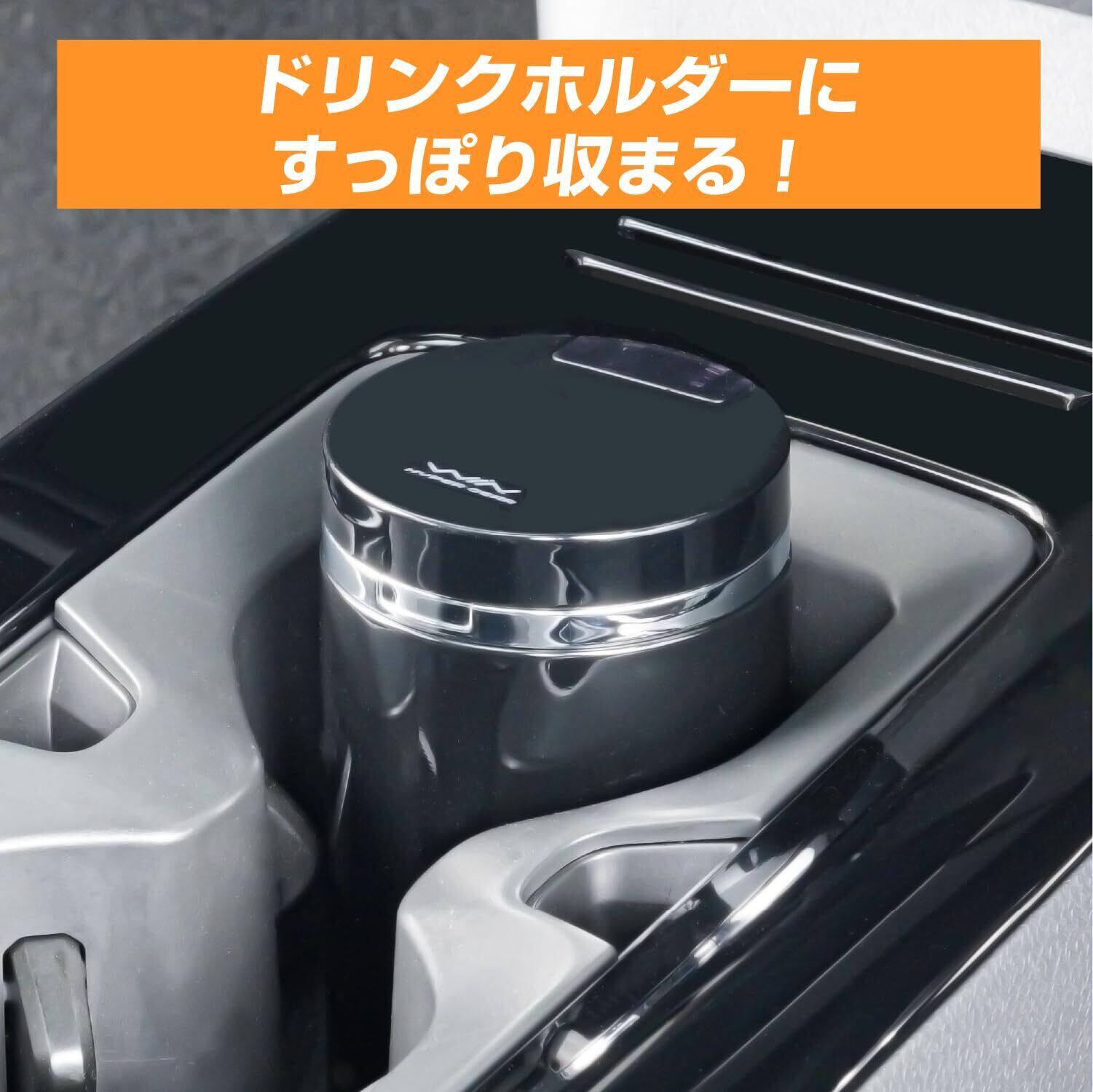 純正や後付けのドリンクホルダーにすっぽり収まる置き型タイプの缶灰皿です。