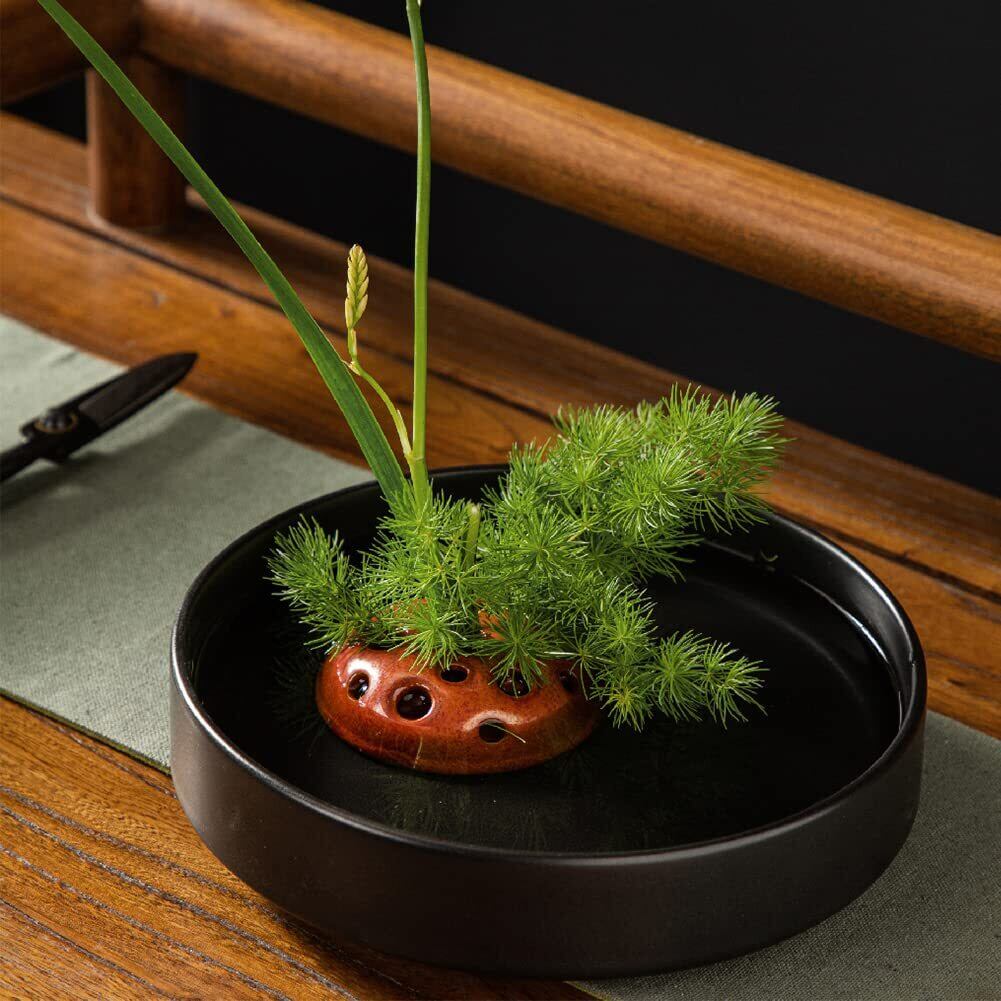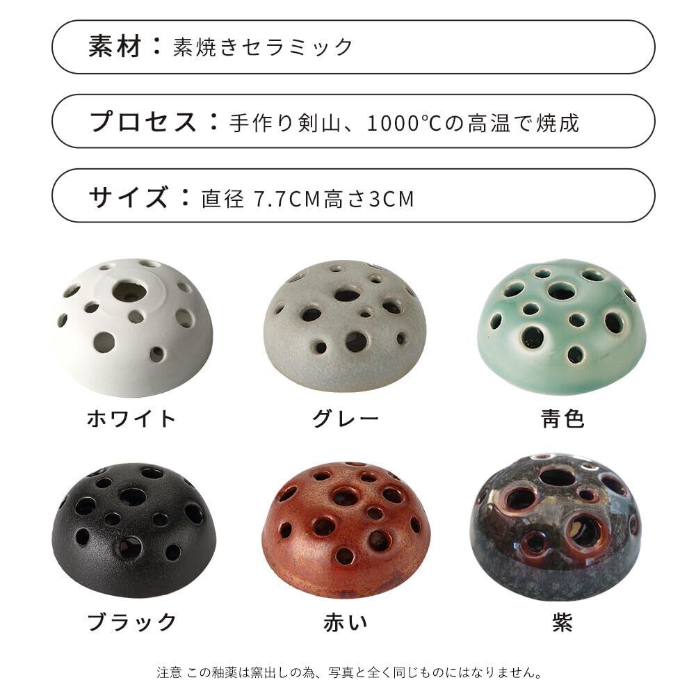 ✿仕様:半円形の針のない剣山、✿素材:陶器。✿プロセス:手作り剣山、素焼きセラミック。✿スタイル:ダーク3セット:ブラック、赤い、紫。✿サイズ:直径 7.7cm高さ3cm。✿パッケージに含まれるもの:剣山*3。(クリーニング用ブラシが付属)