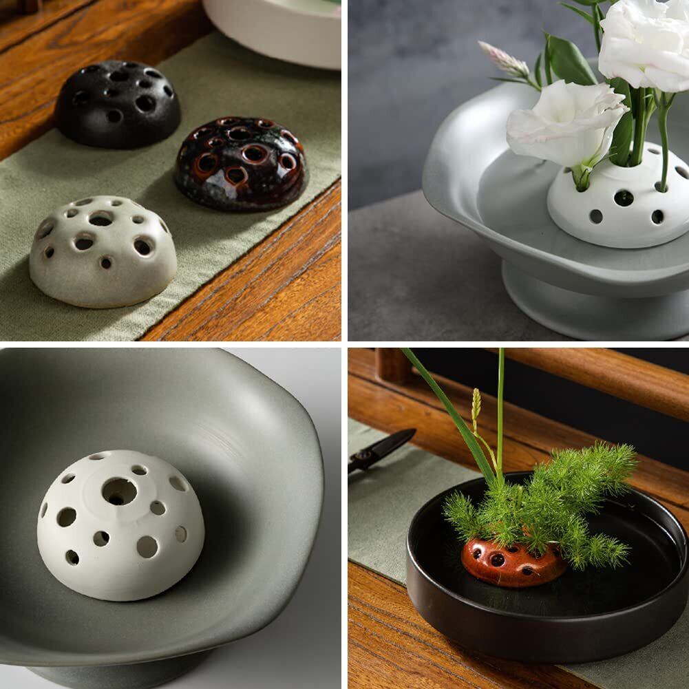 HIGHAWK針のない剣山 フラワーアレンジメント お花 花器 華道 生け花 丸剣山 穴タイプ セラミック デスク 装飾 活け花(ダーク3セット)