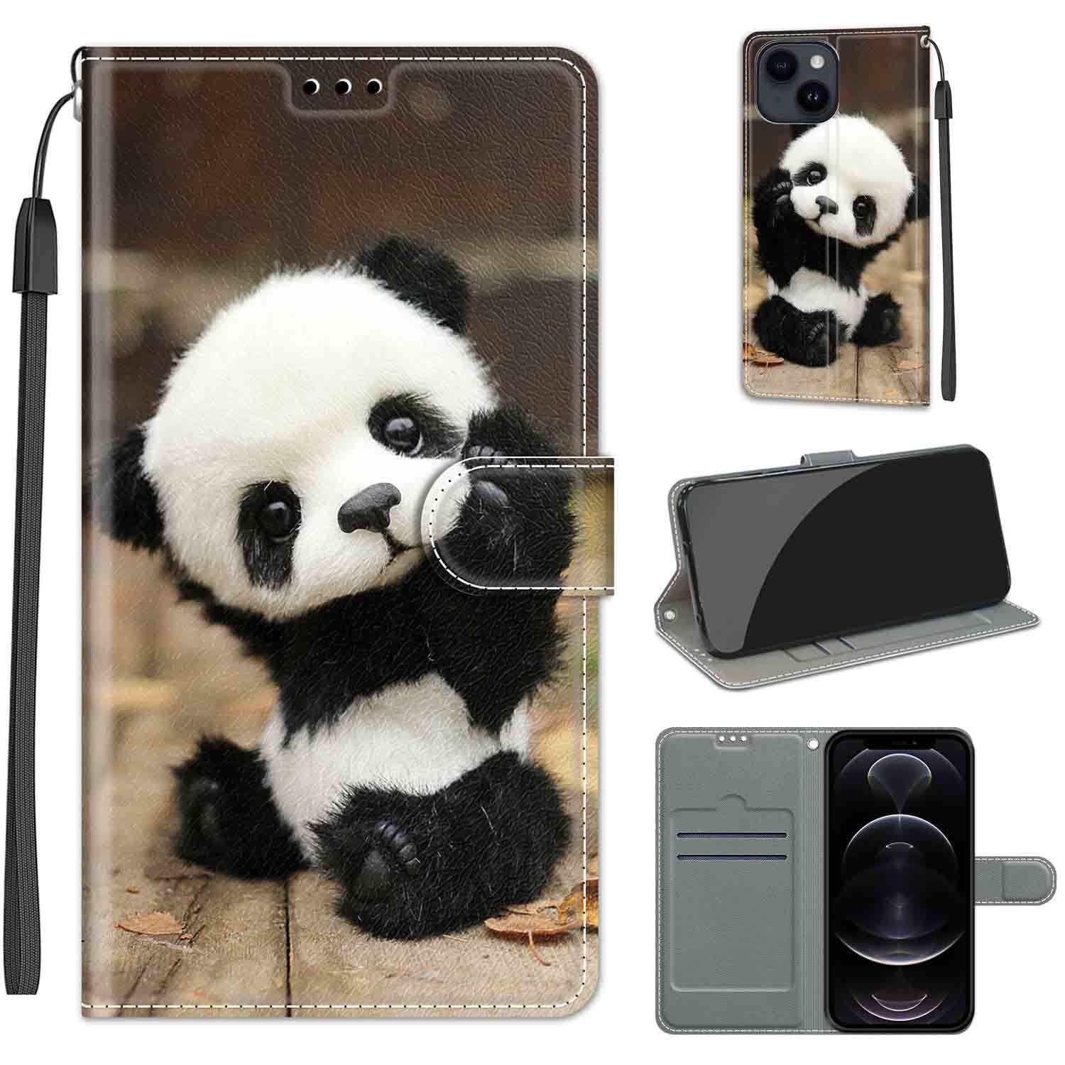 KENHONER iPhone 14 / 13 ケース手帳型 13 スマホケース 携帯カバー レザー 耐衝撃 耐摩擦 全面保護 マグネット式 カード収納 スタンド機能 手触りが良い 人気 上質 6.1インチ対応 パンダ
