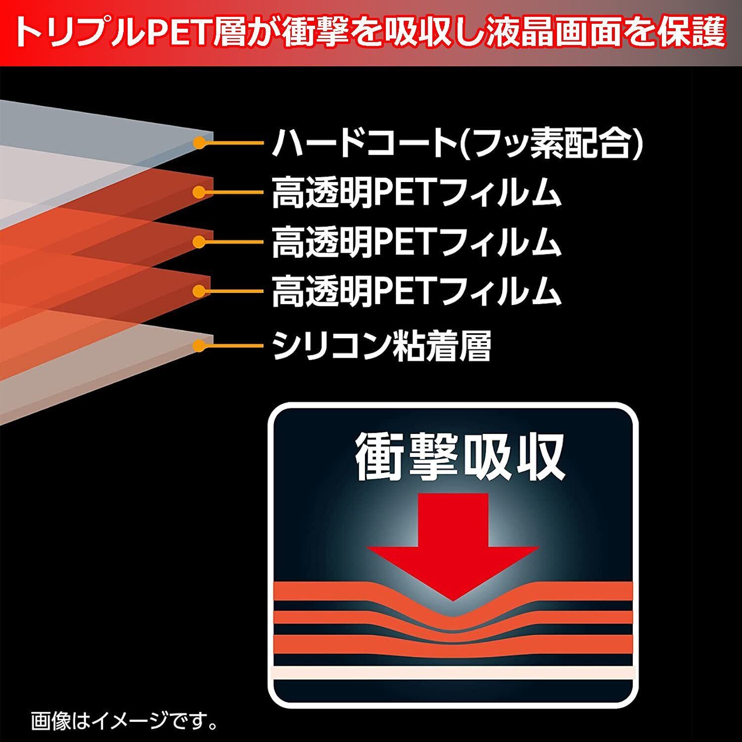 耐ショック・防水モデルに適した「耐衝撃」「撥水」液晶保護フィルム。トリプルPET層が衝撃や傷から液晶画面を保護。