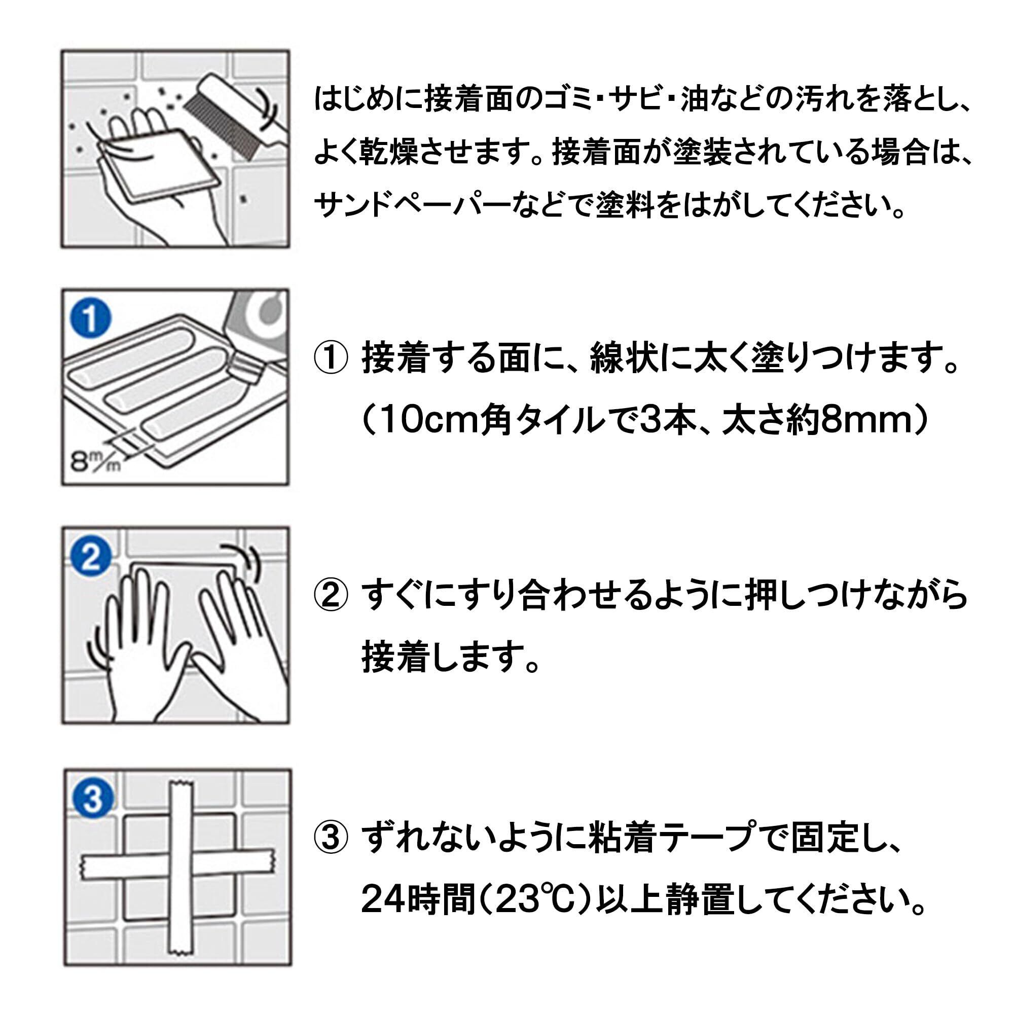 外装・浴室など厳しい条件下でも使用できるタイル用強力弾性接着剤