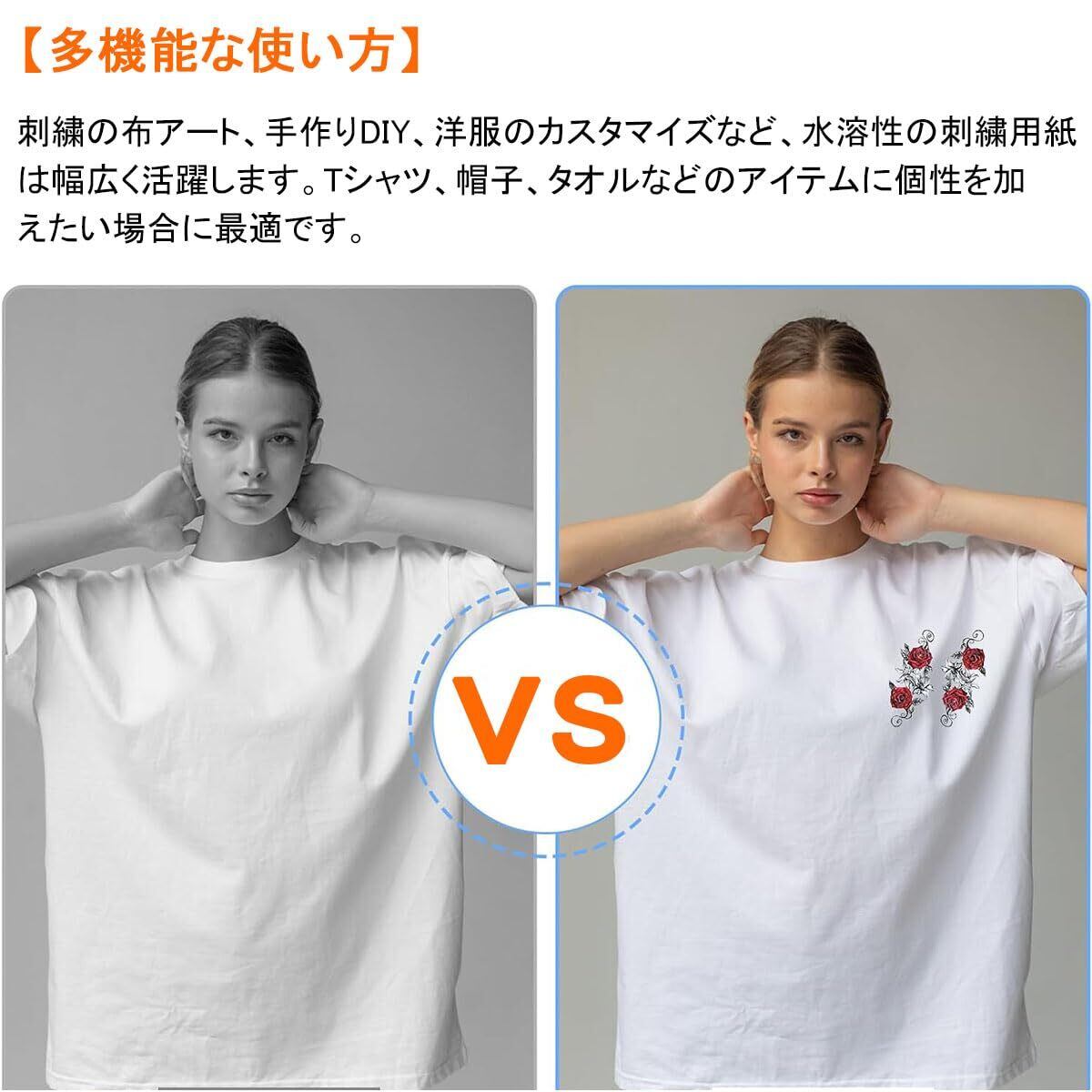 【多機能な使い方】刺繍の布アート、手作りDIY、洋服のカスタマイズなど、水溶性の刺繍用紙は幅広く活躍します。Tシャツ、帽子、タオルなどのアイテムに個性を加えたい場合に最適です。