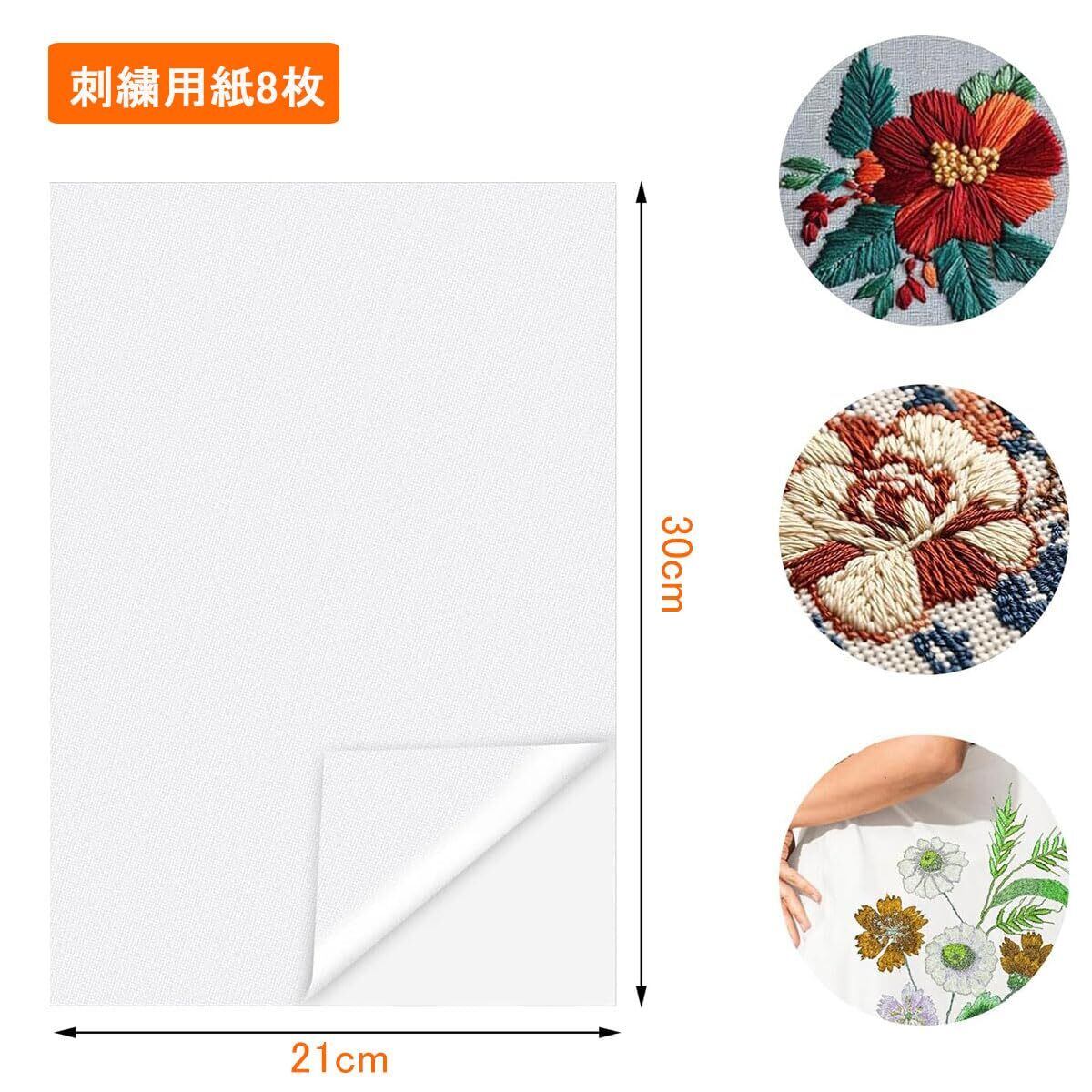 【梱包内容】A4サイズの刺繍用紙8枚。1枚のサイズは約29.7x21センチメートル。