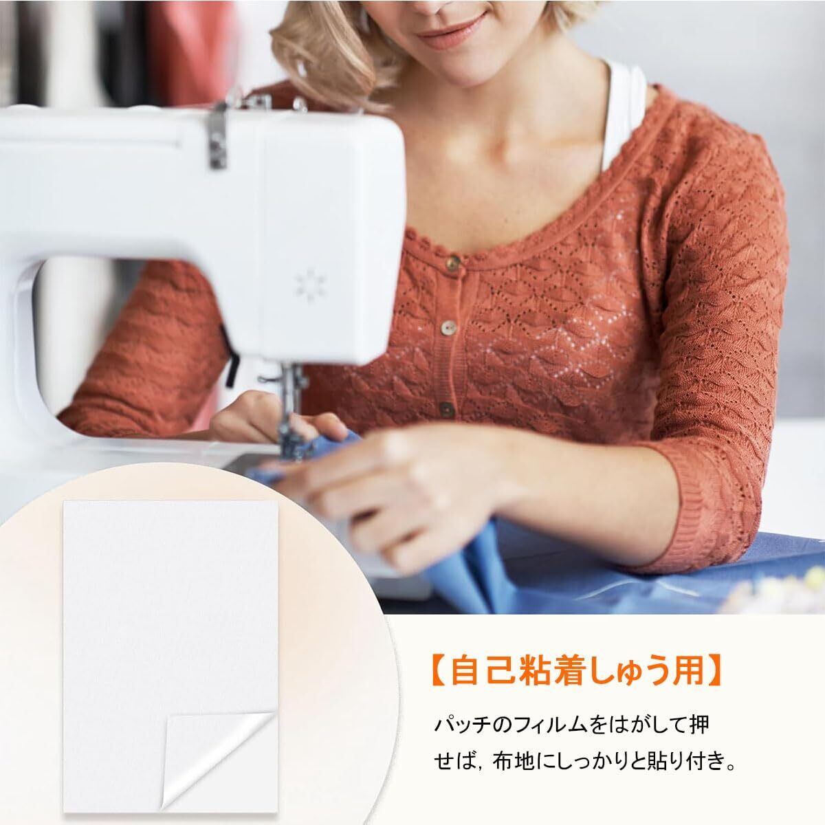 【自己粘着しゅう用】刺繍用下地シート裏面に粘着剤を使用しているため,余分な接着剤が不要で,パッチのフィルムをはがして押せば,布地にしっかりと貼り付き。