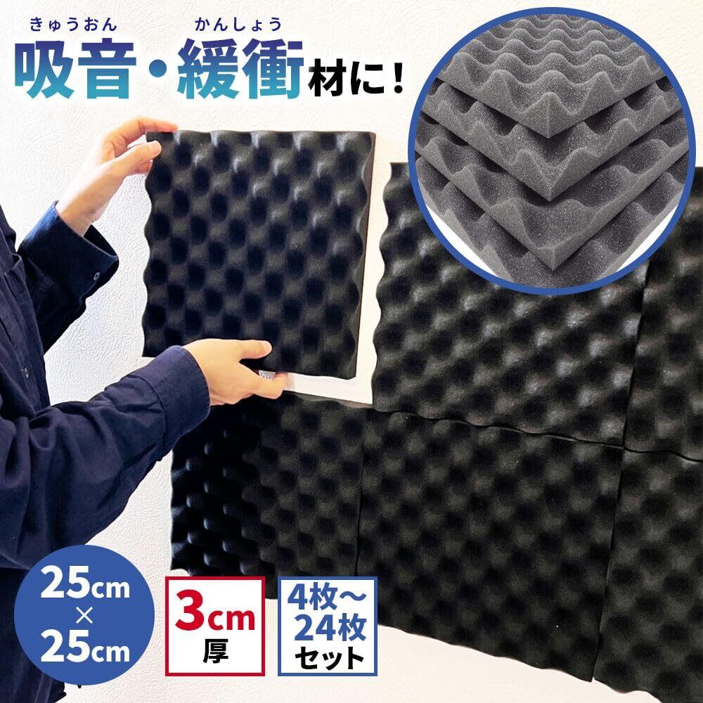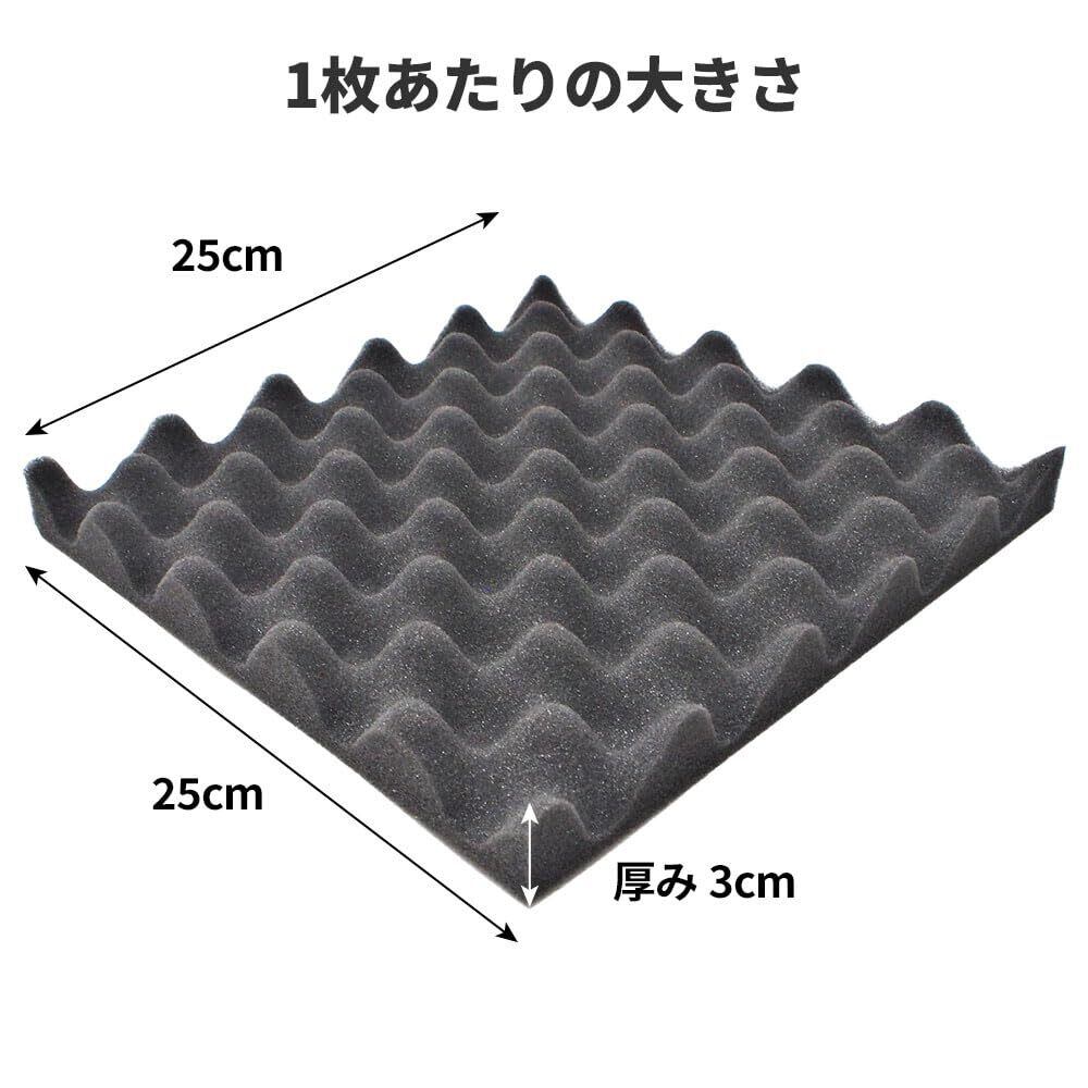 【 すぐ使える 波型3cm 4枚セット 】 防音ファストラボ® 波型 ウレタンフォーム スポンジ 吸音材 緩衝材 クッション材 25cm×25cm 密度26kg/m3