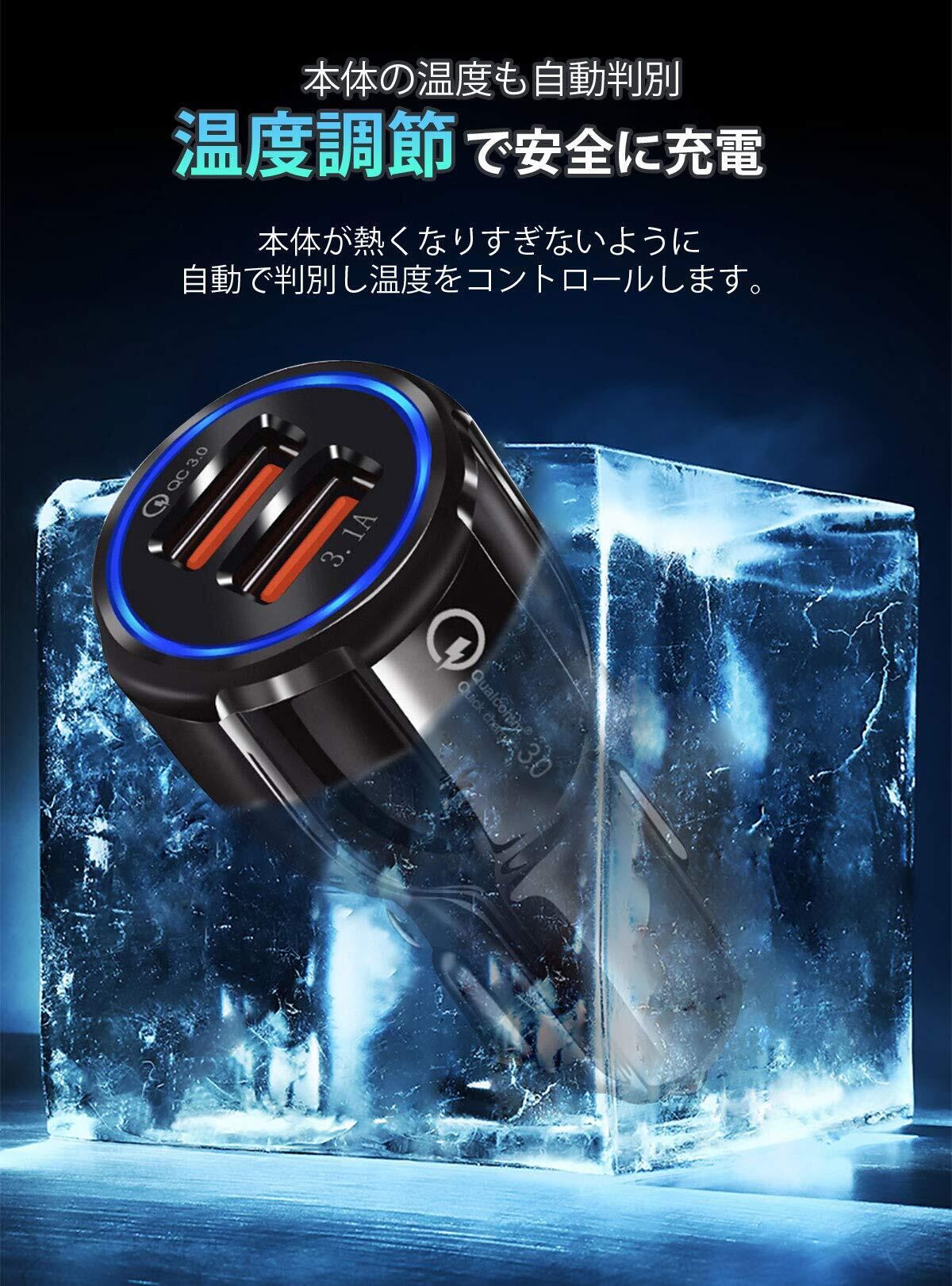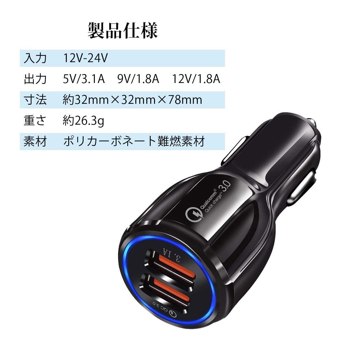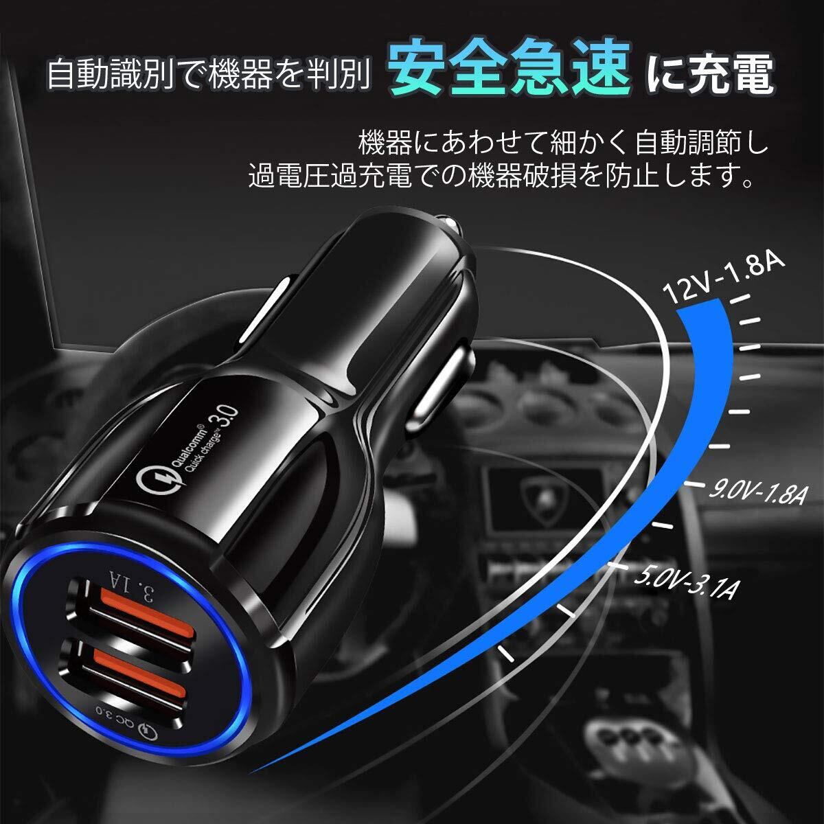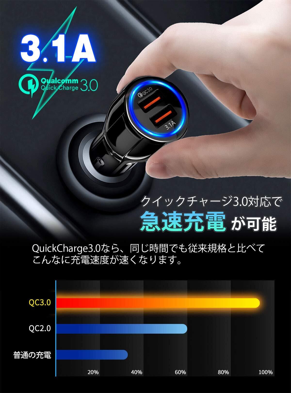 シガーソケット 車 充電ポート 車載充電器 usb カーチャージャー【Quick Charge 3.0対応・3.1A急速充電】iPhone用 Android用 iPad用 Galaxy用 カー用品 qc3.0 変換 2口