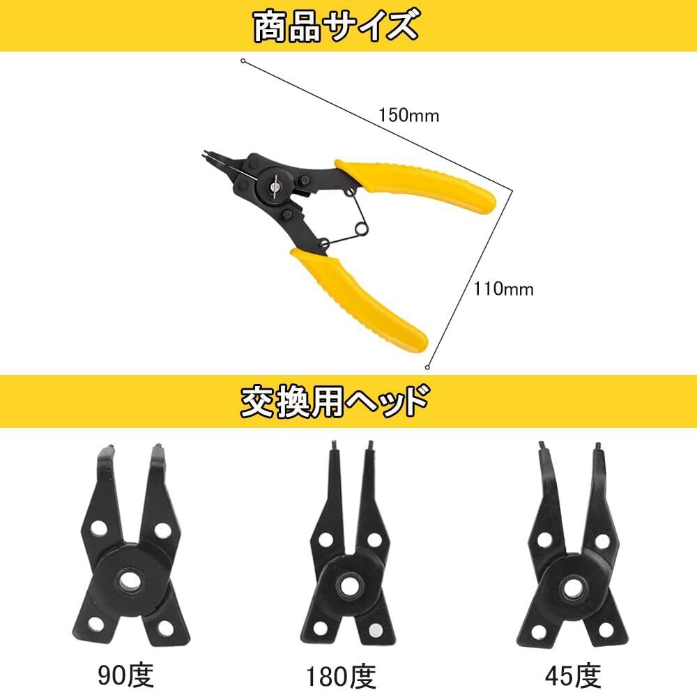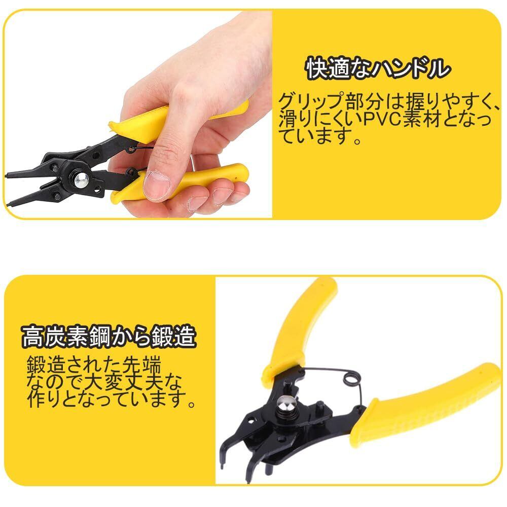 スナップリング プライヤー 4本セット 多角度保持リングプライヤー 内部外部サークリッププライヤー 軸・穴兼用 (イエロー)