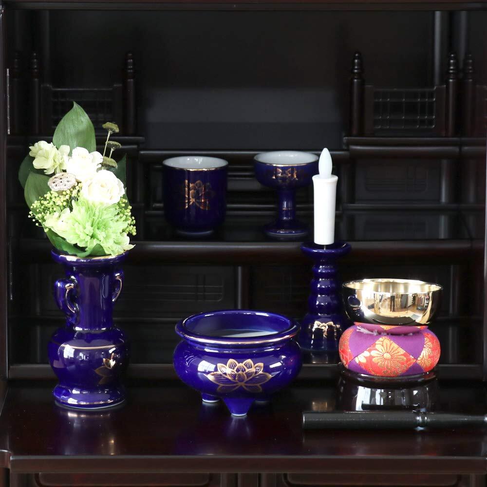 仏具セット 瑠璃色 金蓮 ルリ 陶器 5点+おりんセット 香炉灰・マッチ付 モダンミニ仏壇用
