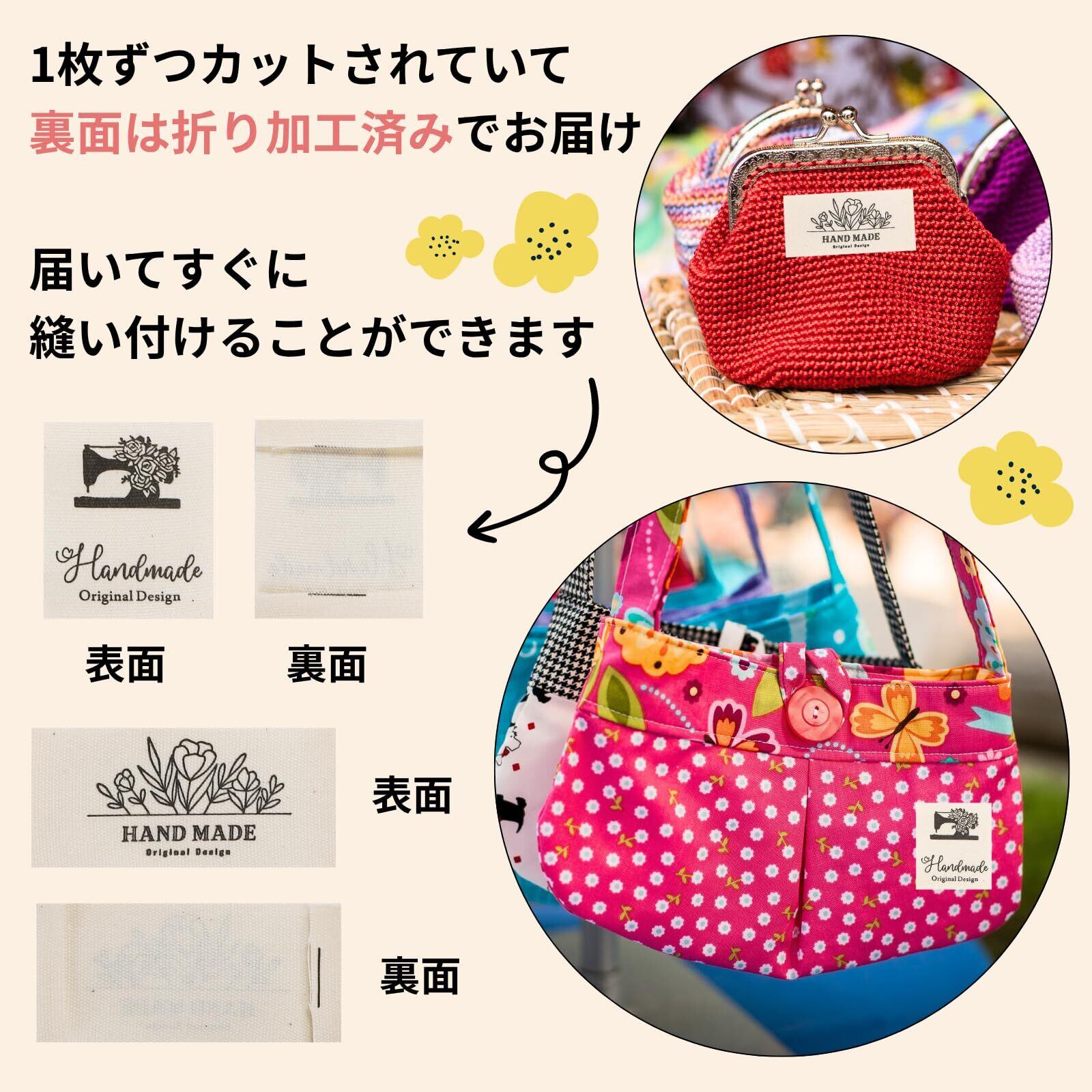 【使いやすい縫い付け仕様】裏面に折り目がついており、布端の処理なしでそのまま縫い付け可能。初心者から上級者まで幅広く使えるタグです。