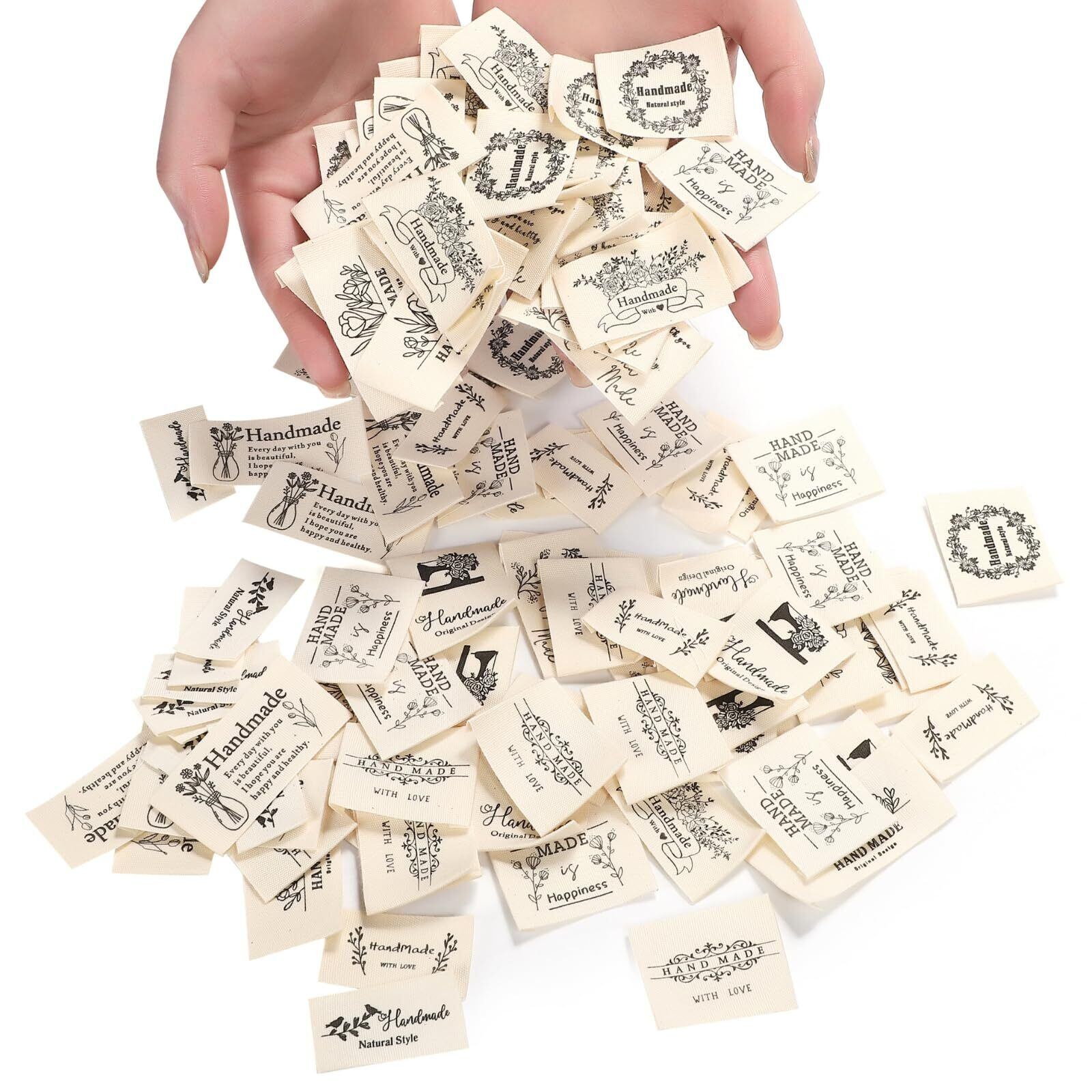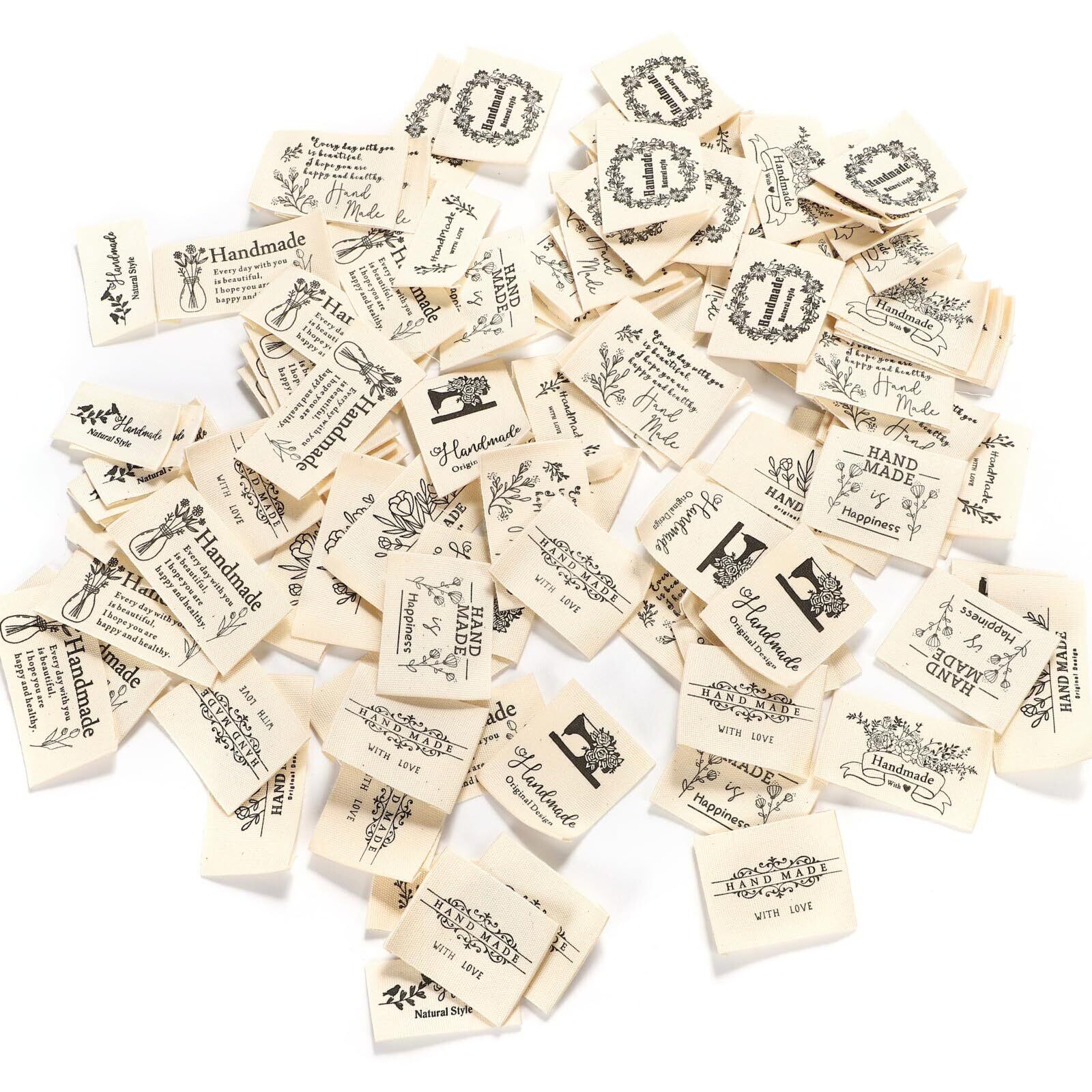 【ワンランク上の仕上がりに】ハンドメイド作品に縫い付けるだけで、完成度を引き上げるコットン製布タグ。ナチュラルで北欧風の英字デザインが、作品にやさしいアクセントを加えます。