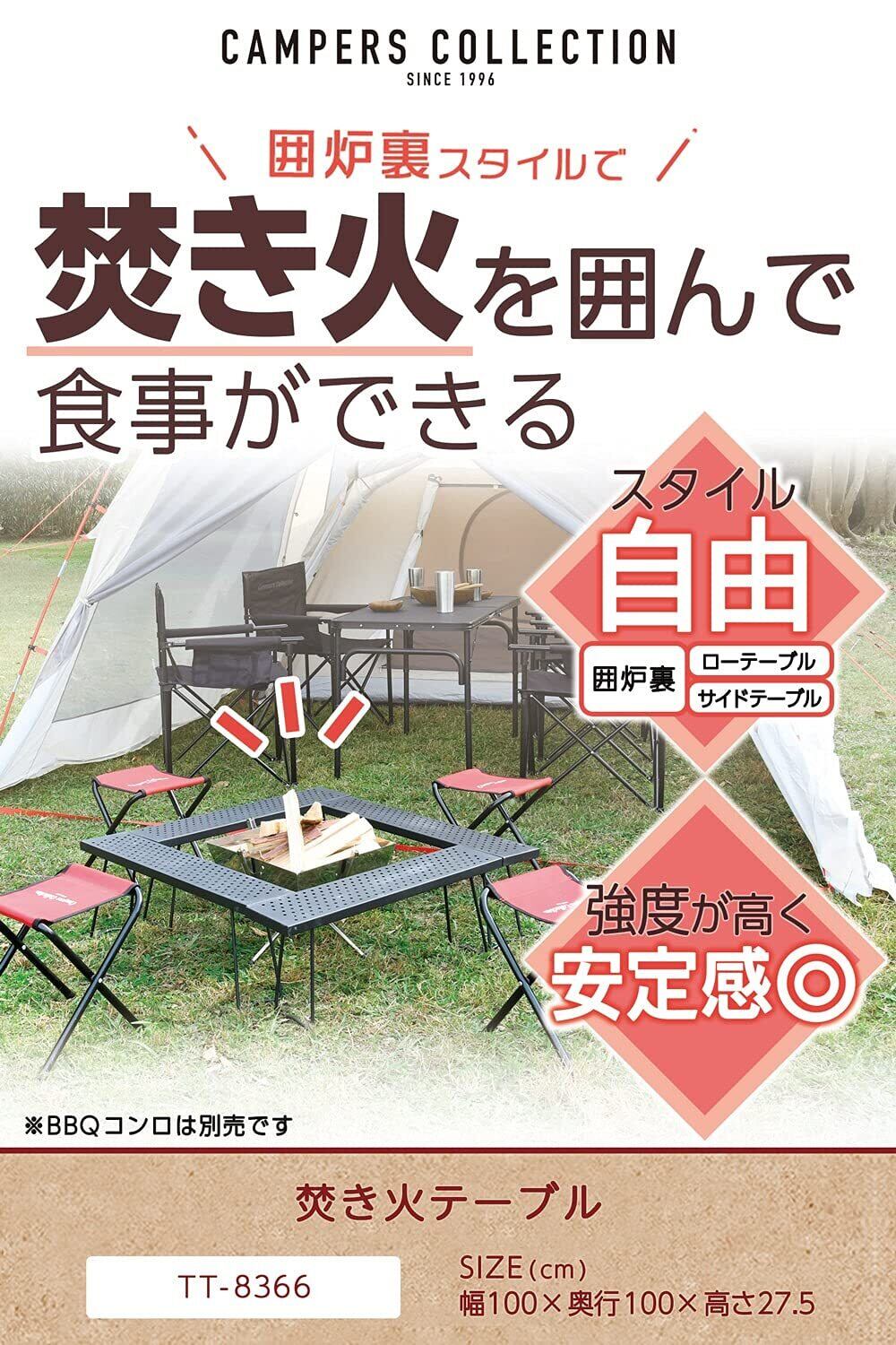 [キャンパーズコレクション 山善] テーブル キャンプ アウトドア (焚き火 バーベキュー) 組み合わせ自由(囲炉裏スタイル ローテーブル) ブラック TT-8366