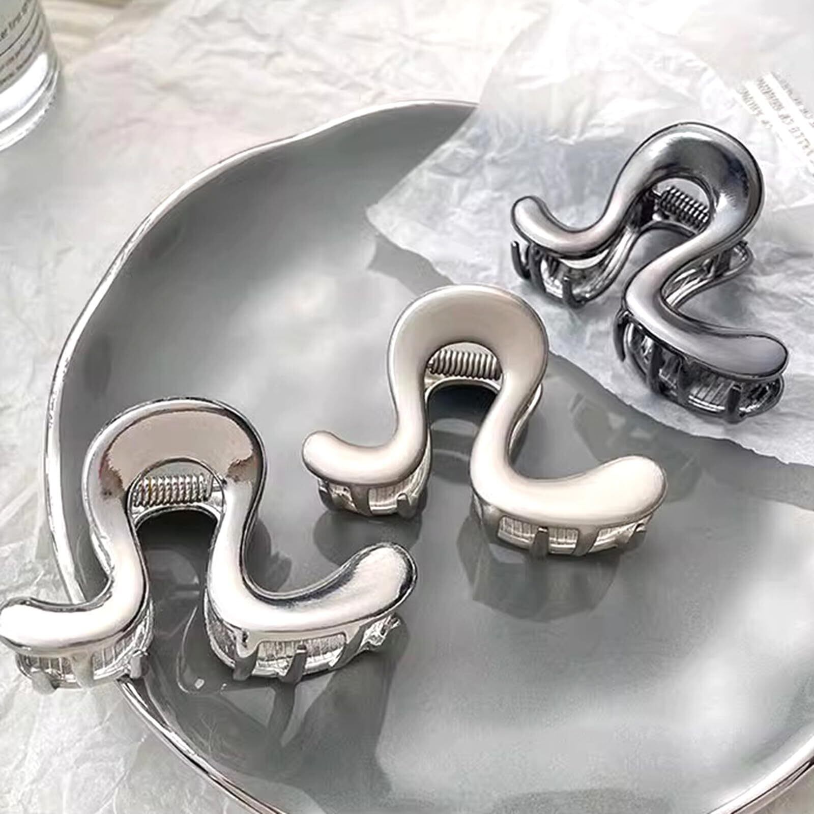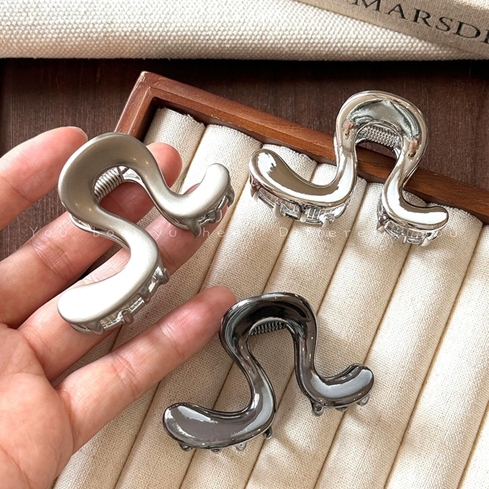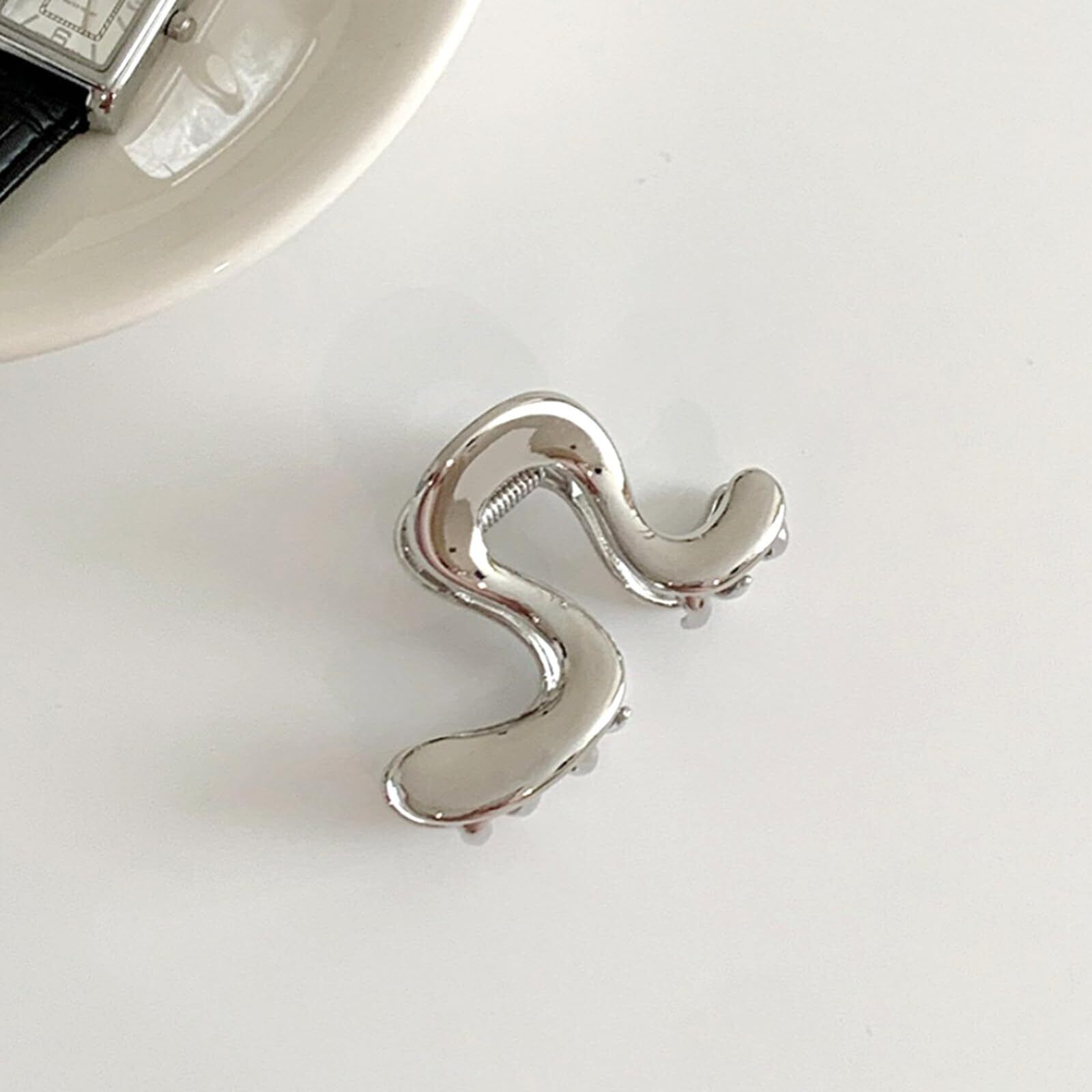 Briskyjp ヘアクリップ 小さめ 6cm しっかりとまる クリップ バンスクリップ ヘアアクセサリー 金属製 バナナクリップ 大人向け 韓風 シンプル オフィス レディース 重量であり 髪留め 髪飾り シルバー