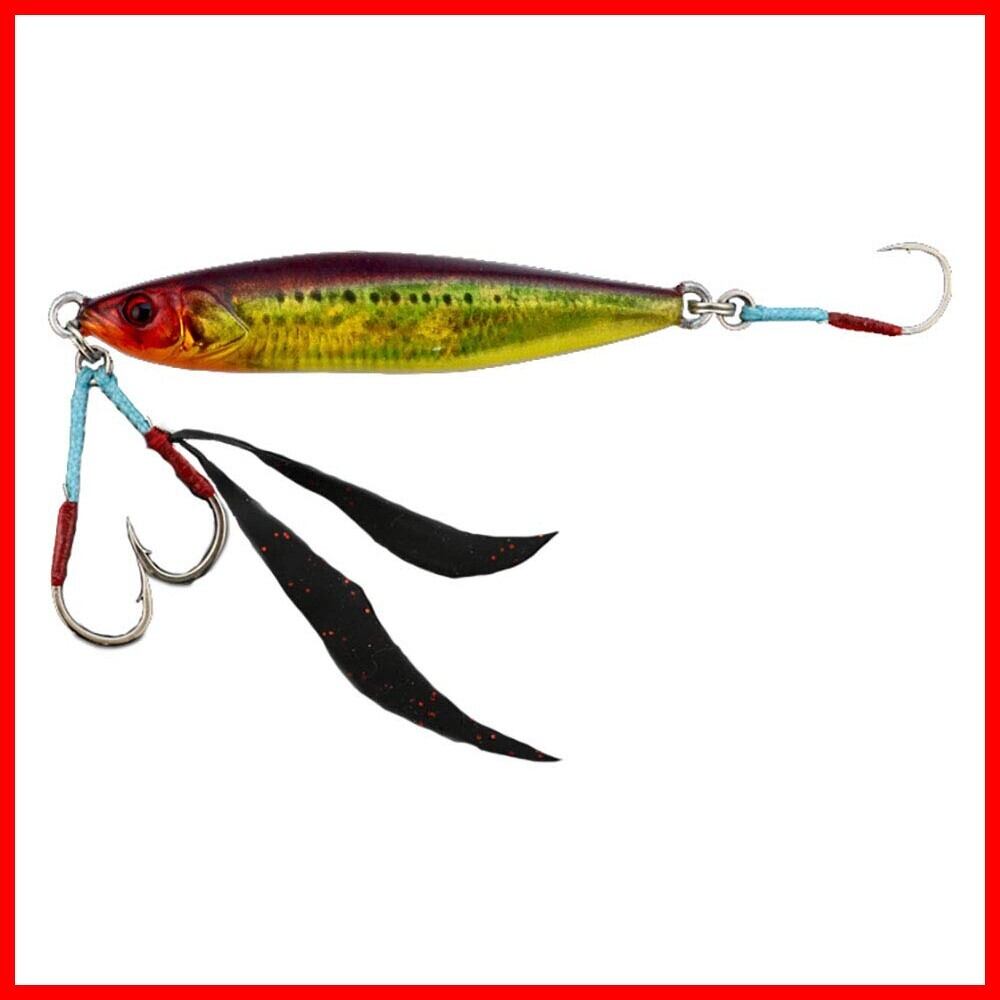 ターゲットを選ばない魅惑の罠(トラップ)。“FLAGTRAP/フラッグトラップ"は、スーパーライトジギングを対象とした小型メタルジグで、中心部からやや後方のウエイトバランス設計によりスムースなフォールとヒラヒラとしたフラッタリングでの食わせ能力を併せ持っており、ボディ形状にフラットな面を設けることでフラッシング効果とジャーク時のトリッキーなアクションを可能にしました。さらにオリジナルラバーがセットされたアシストフックは、フォール時やアクション時になびくことでアピールし、フックの位置を目立たせることで魚が食いつく際の目印となることでしっかりとフッキングに持ち込みます。