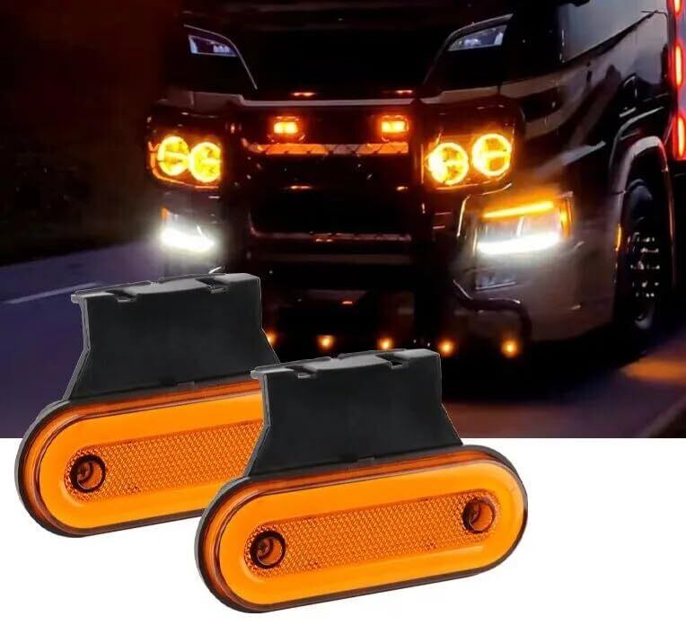 スーパーブライト 12V 24V 兼用 車 トラック LED サイドマーカー マーカーランプ サイドランプ デイライト LED 路肩灯 高機能防水 LEDマーカー M7 2個セット オレンジ (アンバー) | hananoki