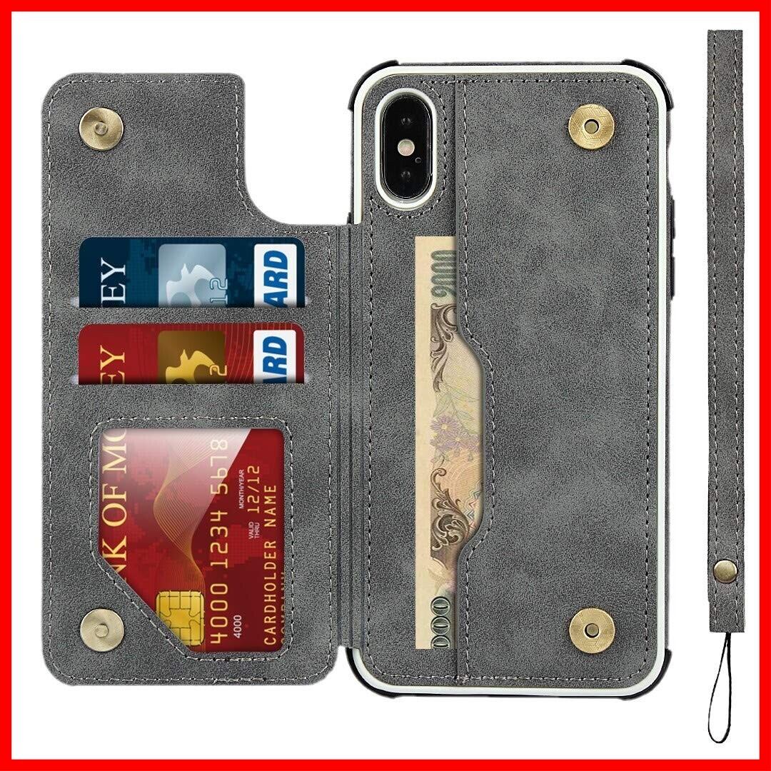 Pelanty for iPhone XS Max 手帳型ケース for iPhoneXS Max ケース縄掛け 背面カバー PUレザー IC カード収納 軽量 スタンド機能 ボタン磁気 多機能 アイフォンXS Max スマホケース 耐衝撃 滑り防止 全面保護 ストラップ 携帯カバー -グレー
