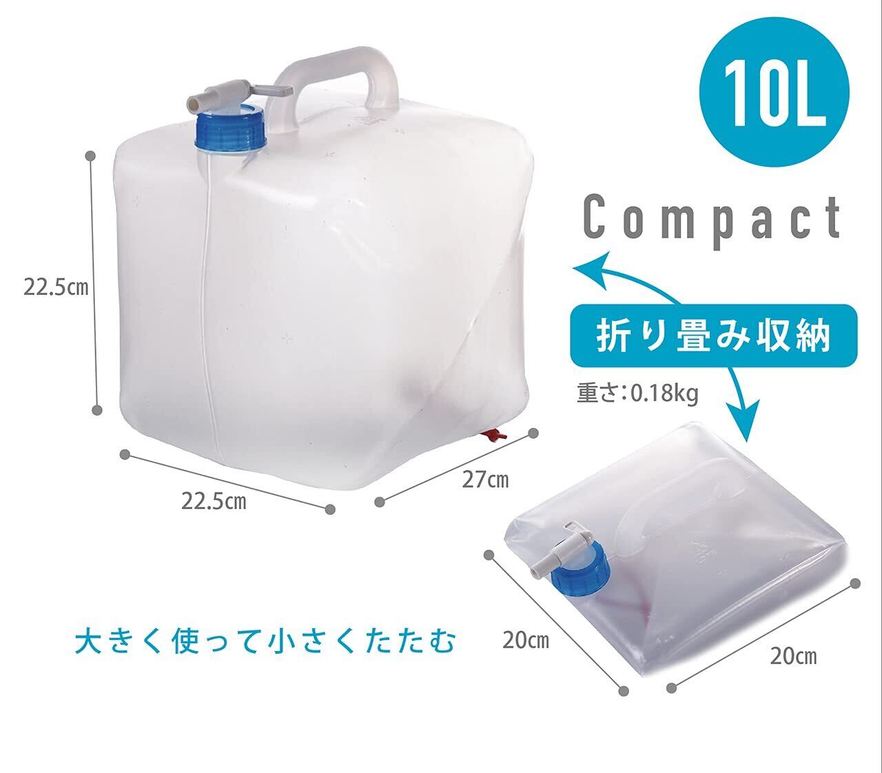 取っ手と蛇口コックが付いている室内、室外両用でご利用いただける ウォータータンク(10L)の3個セットです。 使わない時はコンパクトに折りたたむことができるので、収納場所に 困りません。