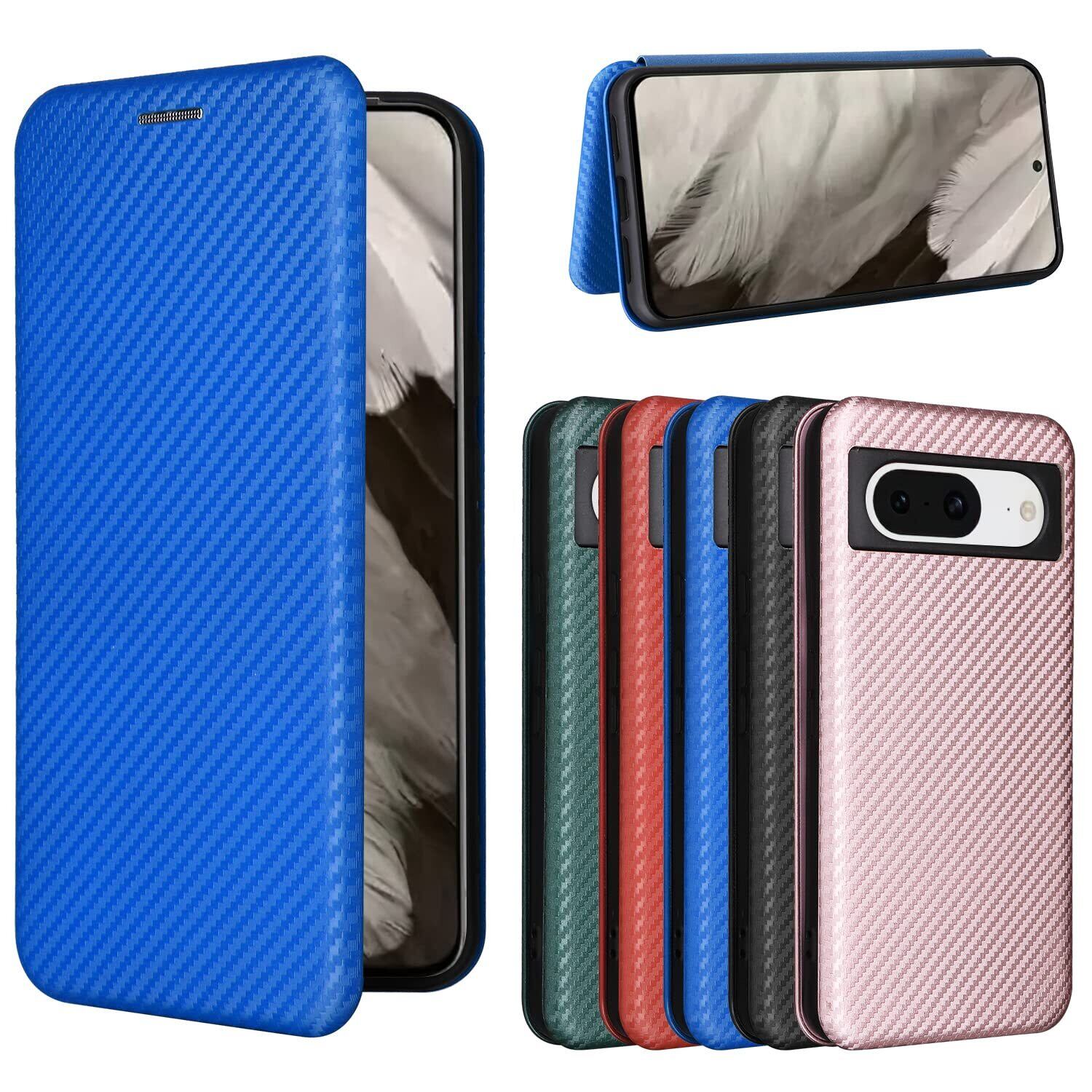 Pelanty for Pixel 8 ケース 手帳型 炭素繊維調 for Google Pixel8 携帯カバー 背面 軽量 薄型 財布型 カード収納 グーグル ピクセル8 スマホケース マグネット ストラップ付き 耐衝撃 全面保護-ブルー | hananoki