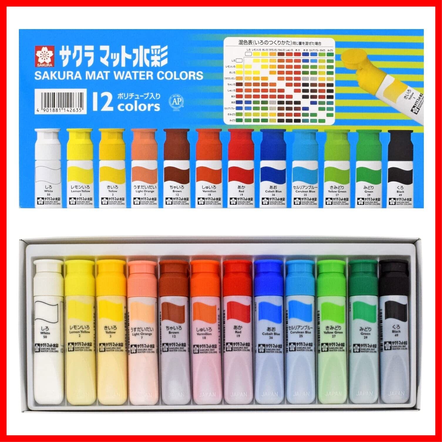 サクラクレパス 絵の具 マット水彩 ポリチューブ入り 12色セット MW12PR