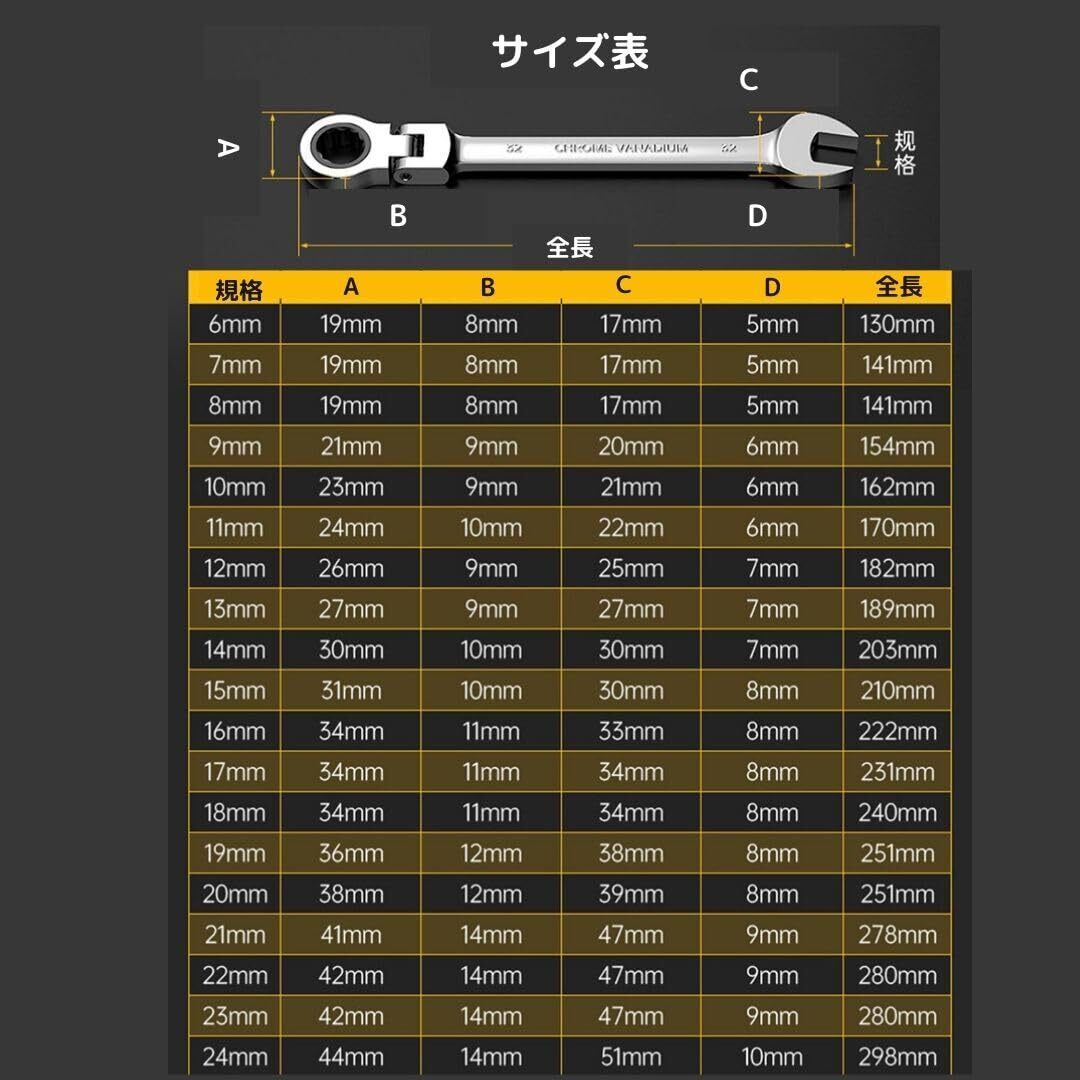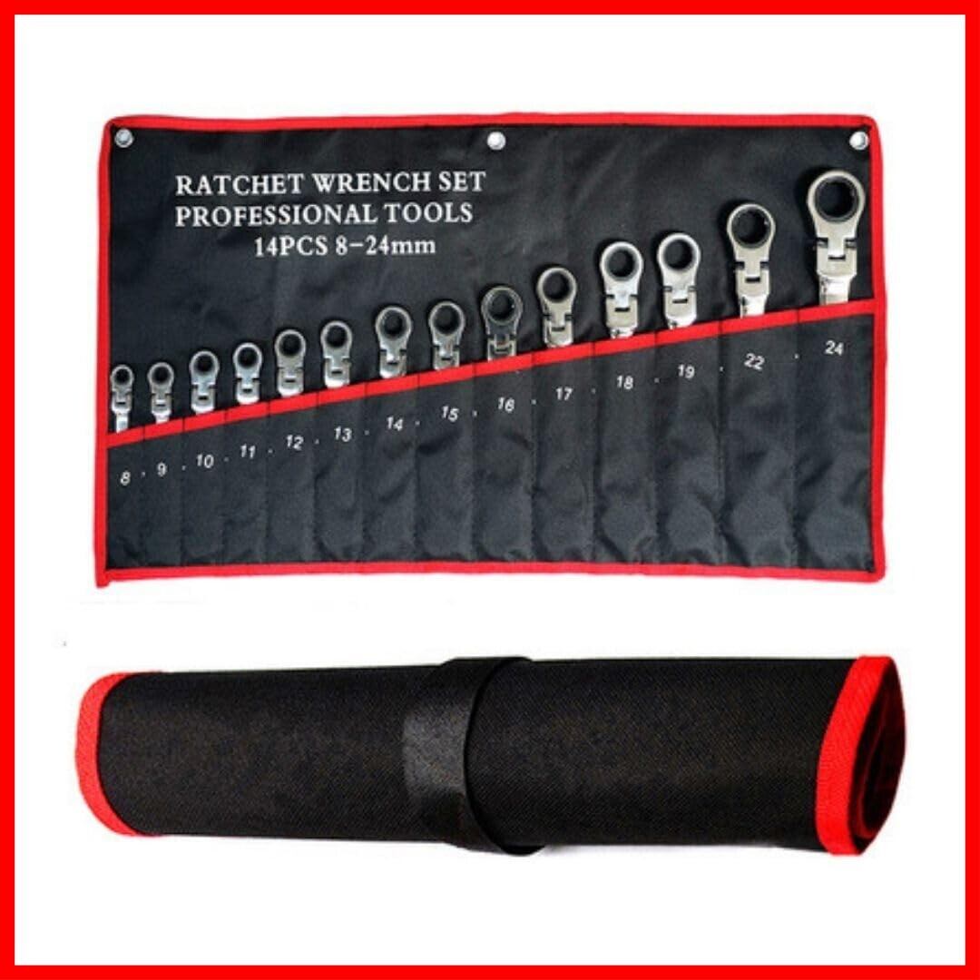14本セット 首振り ラチェットレンチ ケース付き 8mm~24mm フレックス ラチェット ギア レンチ セット 自動車整備工具 自転車整備 大きさ いろいろ スパナ コンビネーションレンチ ラチェットハンドル トルクレンチ ラチェットレンチ