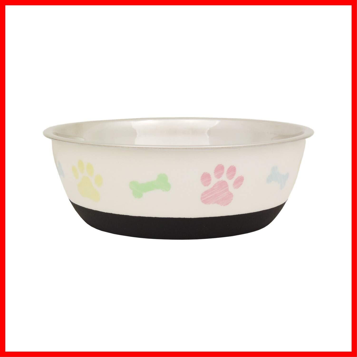 ステンレスボウルに樹脂を組み合わせた、使い勝手の良いかわいいボウル。底面全体にラバーがついていて、食事中のカタカタ音を防ぎます。