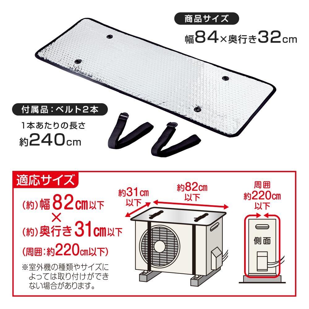 直射日光からガード! 遮熱パネルがエアコン室外機の直射日光を遮り、熱から守ります。エアコン室外機の負担を軽減し、効率をアップ! ベルトで固定し、取り付け簡単です。