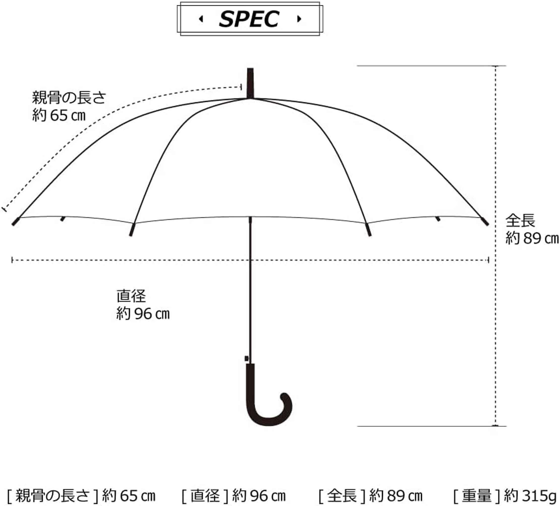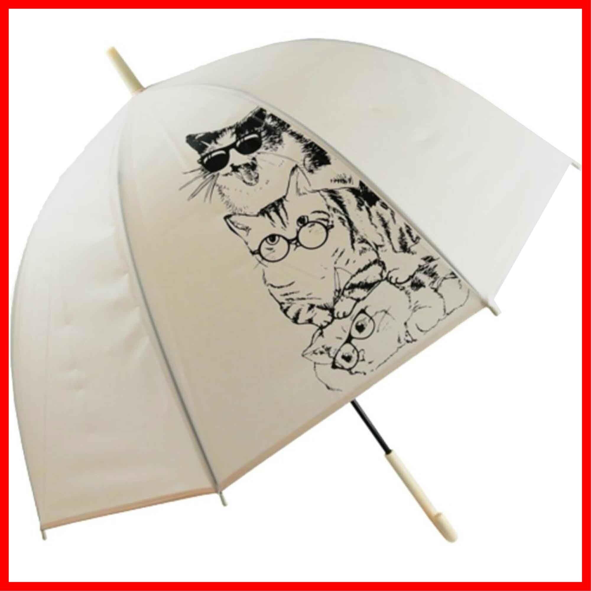 ベーシックスタンダード 長傘 レディース ドーム型 大きい 65cm 軽量 手開き 丈夫 耐風 グラスファイバー骨 かわいい 猫 ワンポイント ベージュ