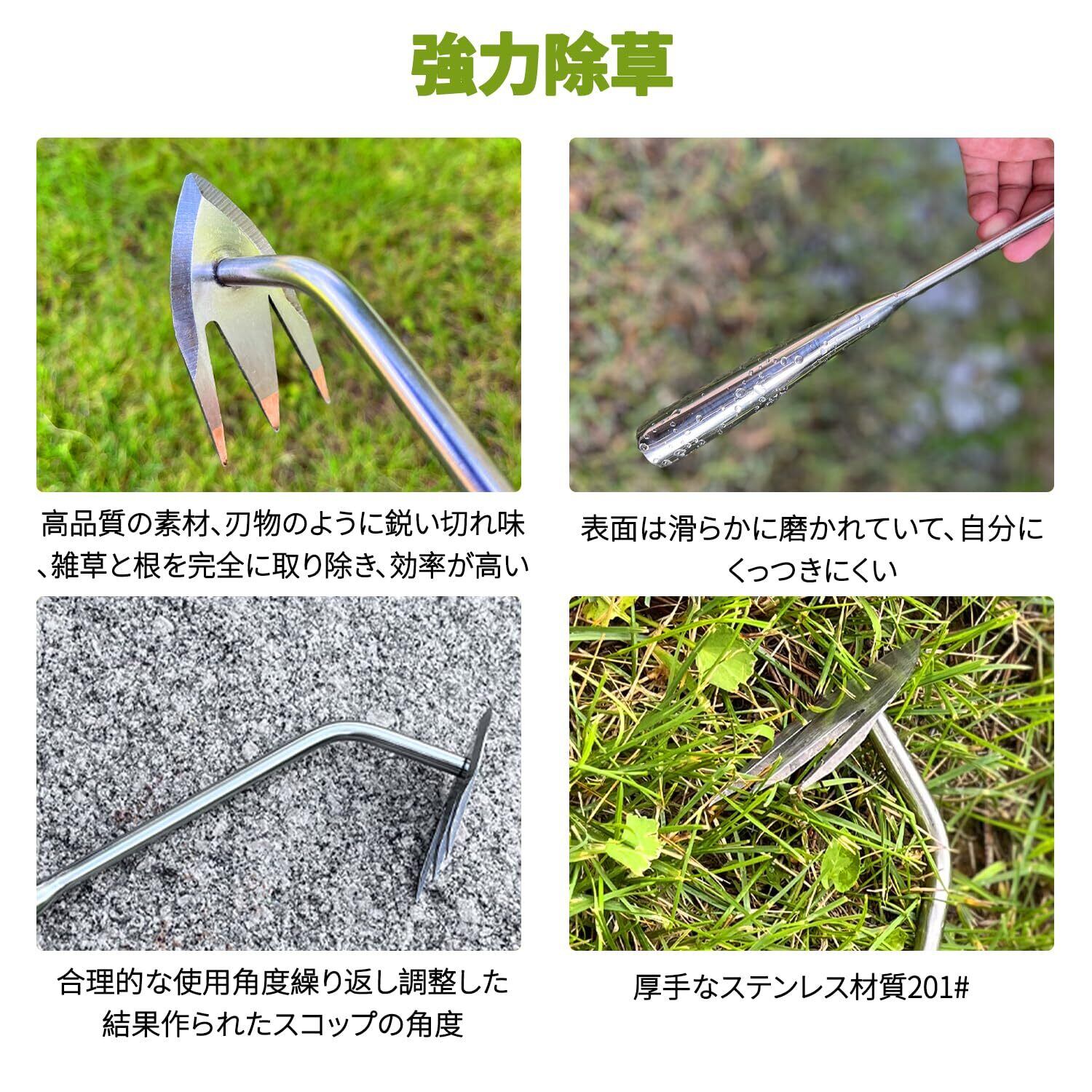 【快適で長いハンドル】ハンドルは人間工学に基づいており、手の形状に合わせて作られているため、より遠くまで届き、疲労を軽減して草取りをすることができます。拡張ハンドルは使用範囲を広げ、先の尖ったヘッドは狭い場所にも簡単に対応でき、幅広い環境で除草作業を簡素化できる