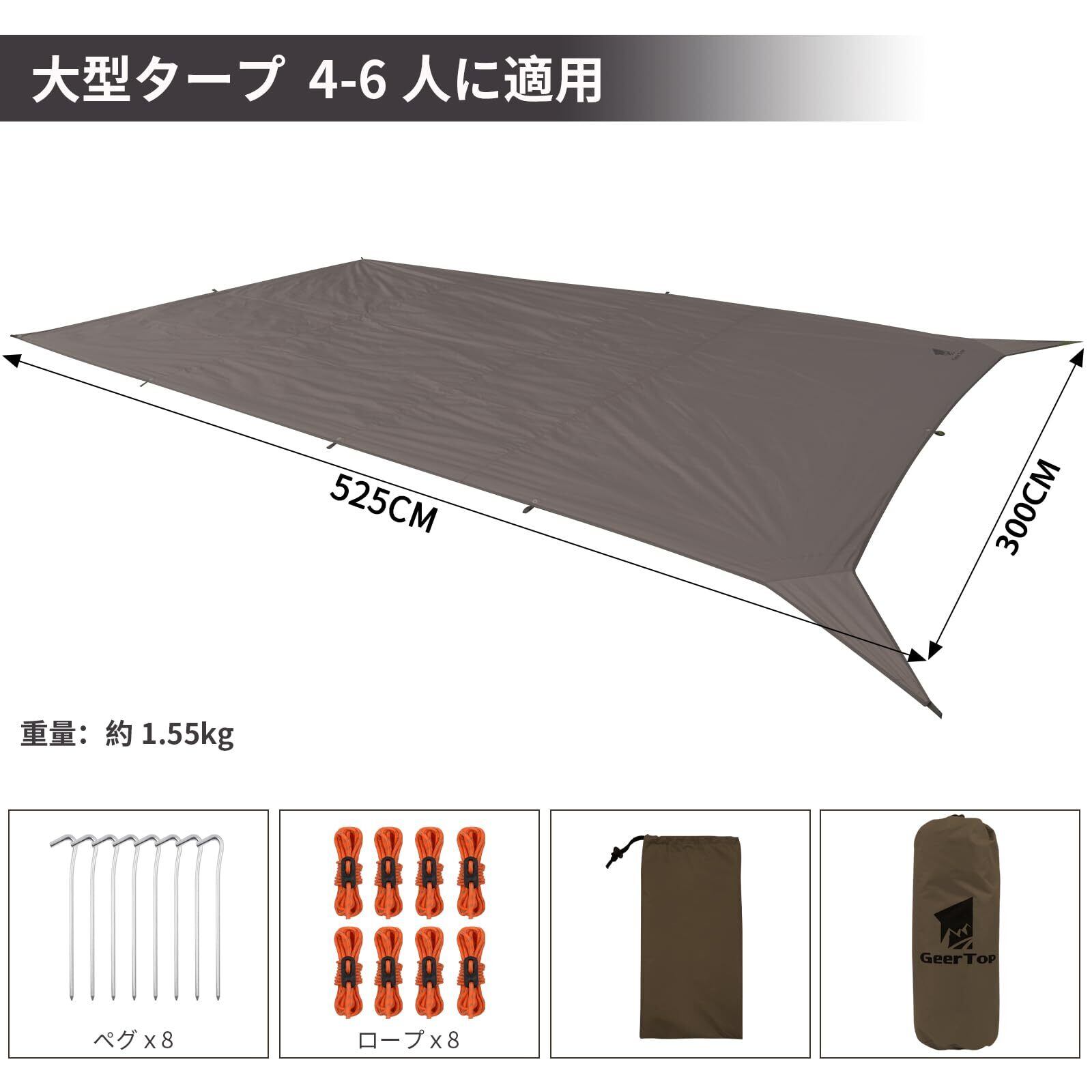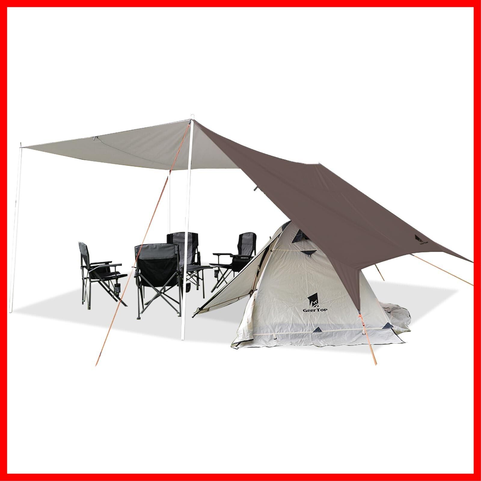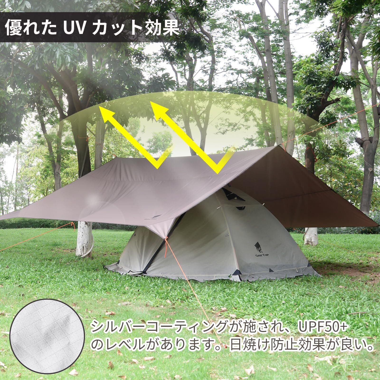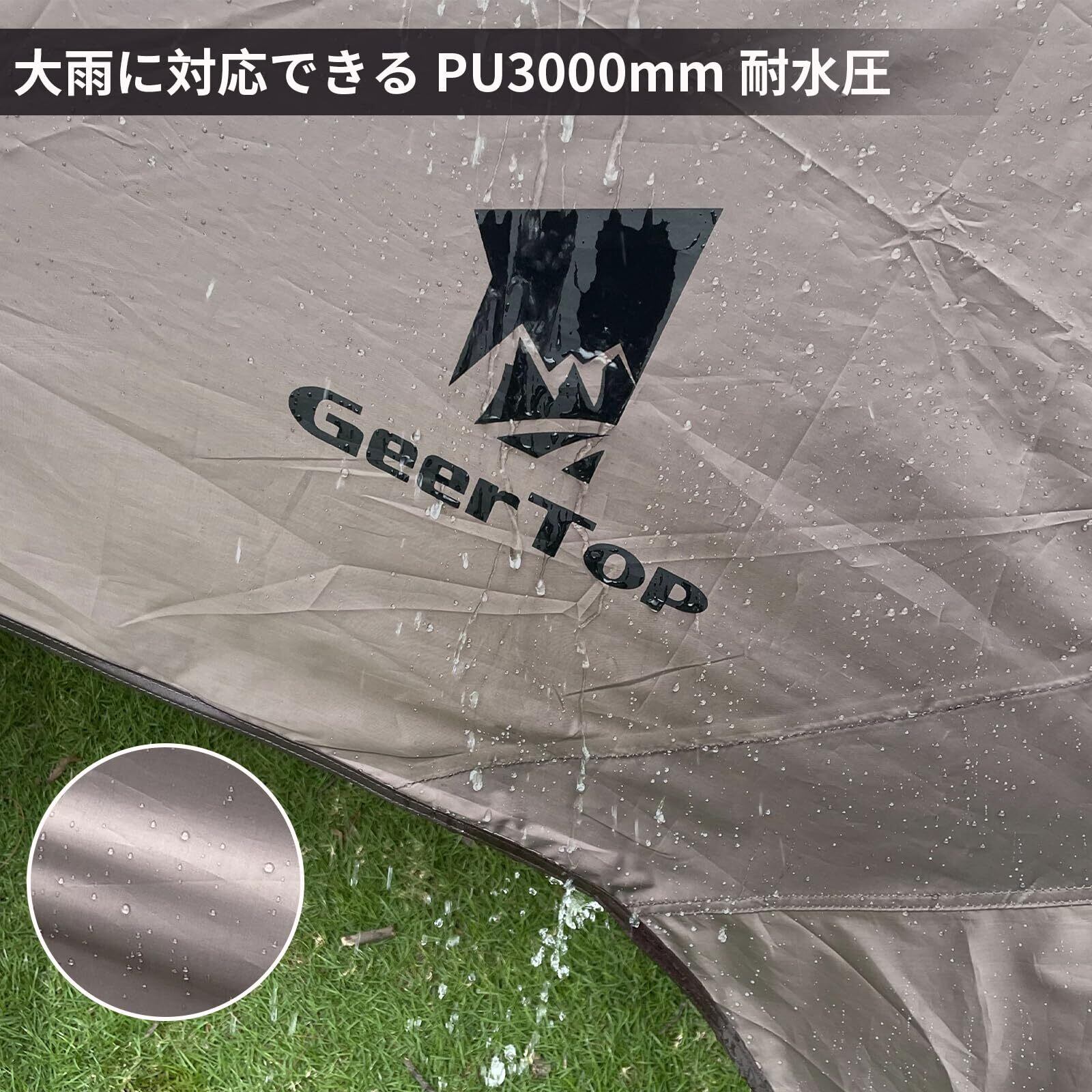 Geer Top 防水タープ キャンプ タープ 3m×5.25m 大型 UVカット UPF50+ 耐水3000mm 耐引裂 日よけ 紫外線カット 遮光 遮熱 カーサイドタープ アウトドア レジャー ピクニック 公園 観戦 車中泊 ビーチ ブラウン