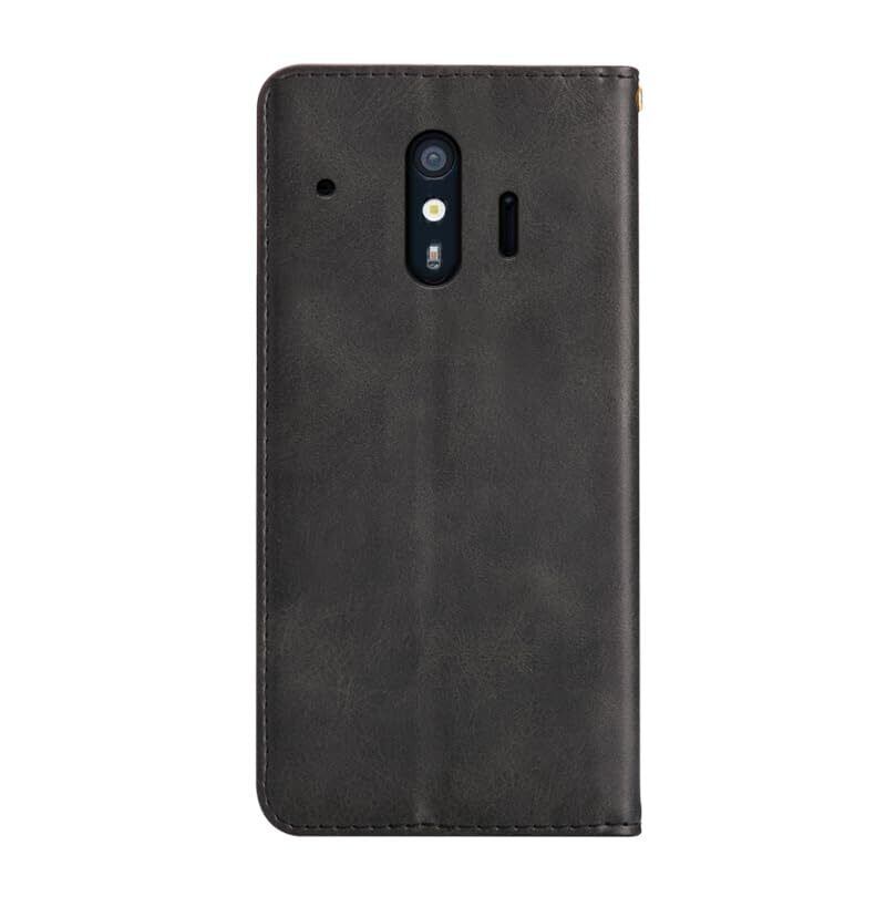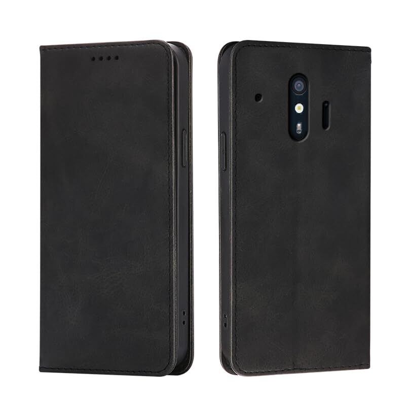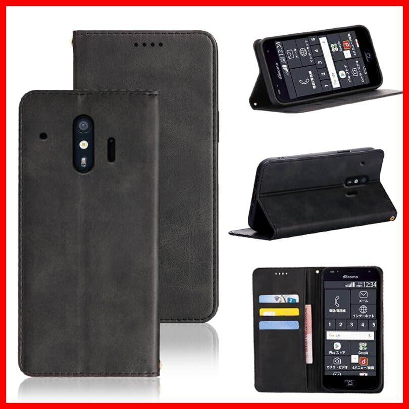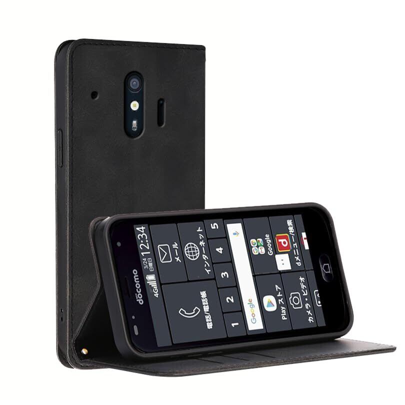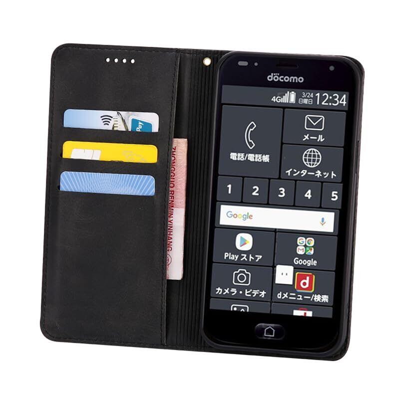 適用 らくらくスマートフォン me F-01L / F-42A ケース 手帳型 カバー PUレザー カード収納 財布型 耐衝撃 ケース マグネット スタンド機能付き 5色 (ブラック)