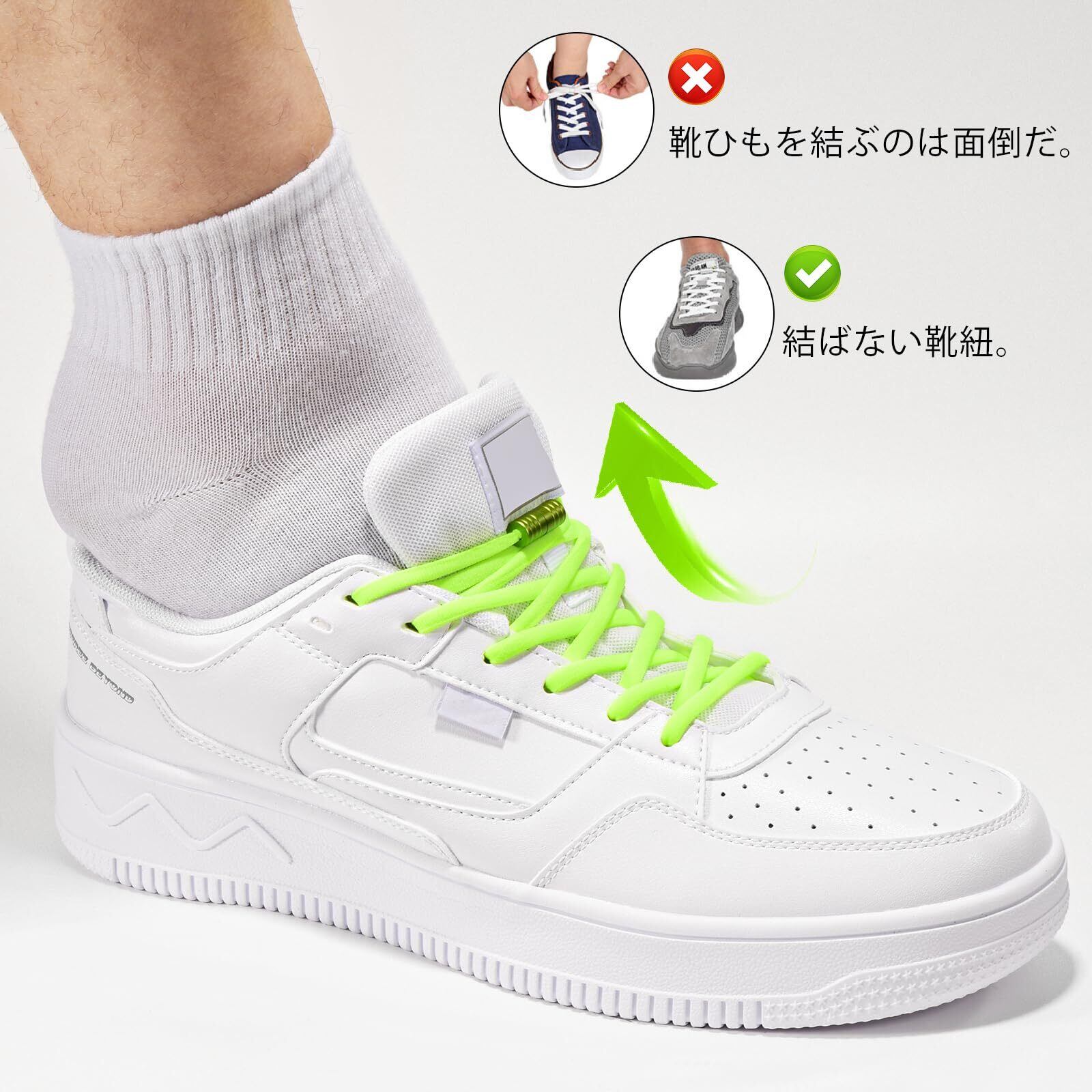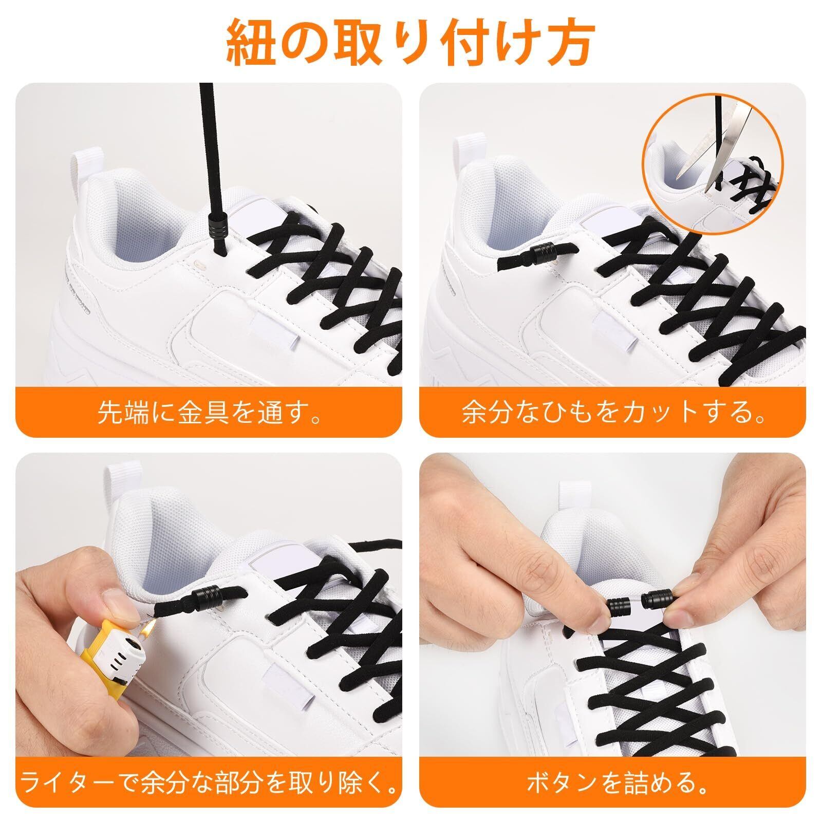 [Tadong] 靴ひも 結ばない靴紐 ゴム製 伸びる靴紐 ほどけない 簡単取り付け スニーカー シューズ 子供 大人 高齢者に 1足分