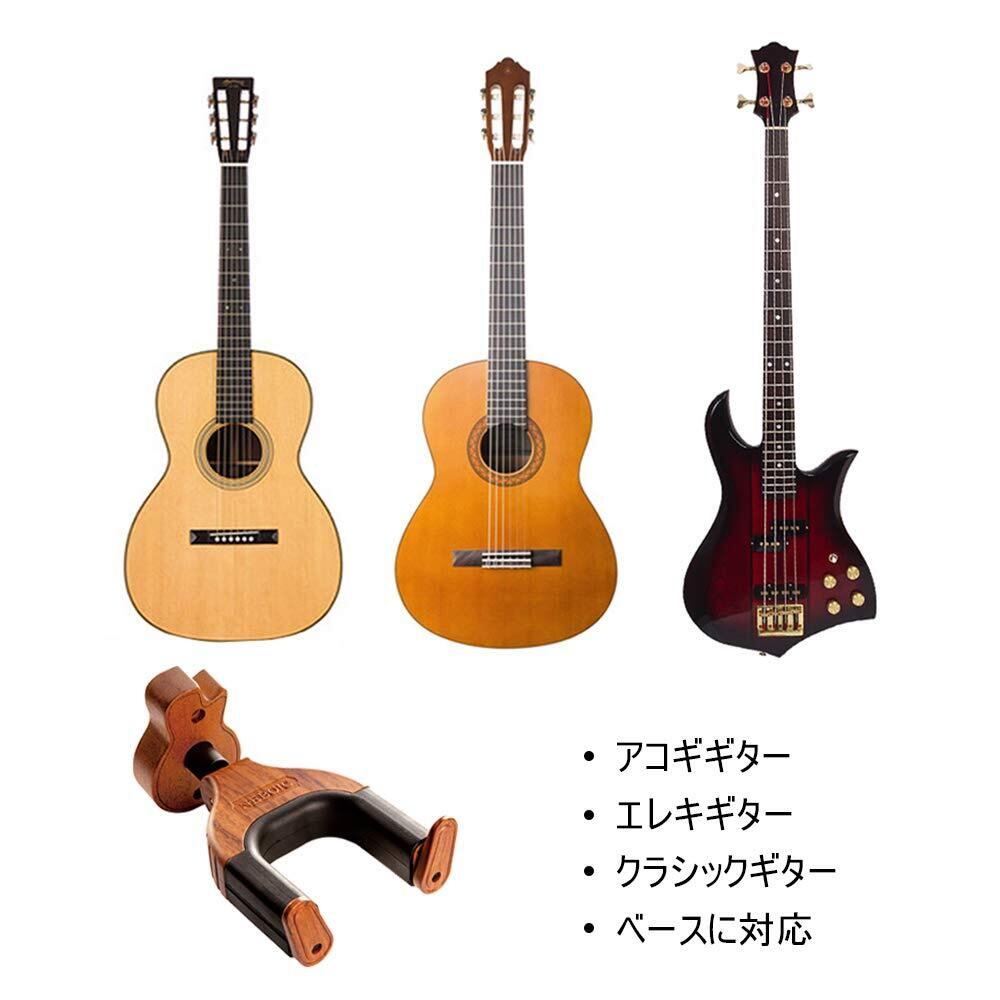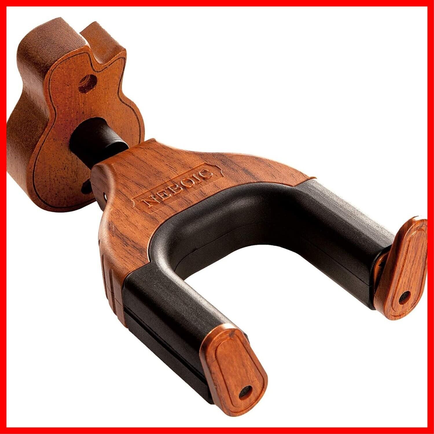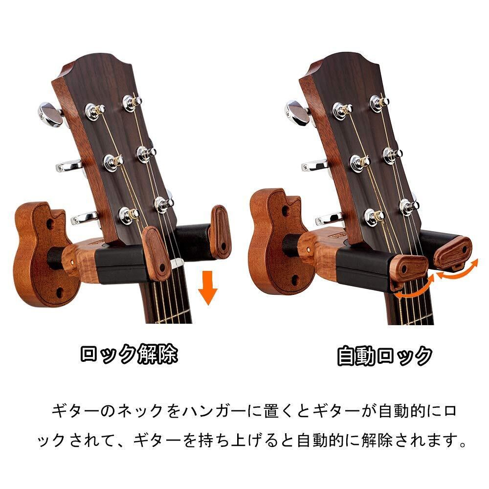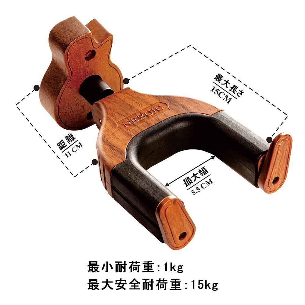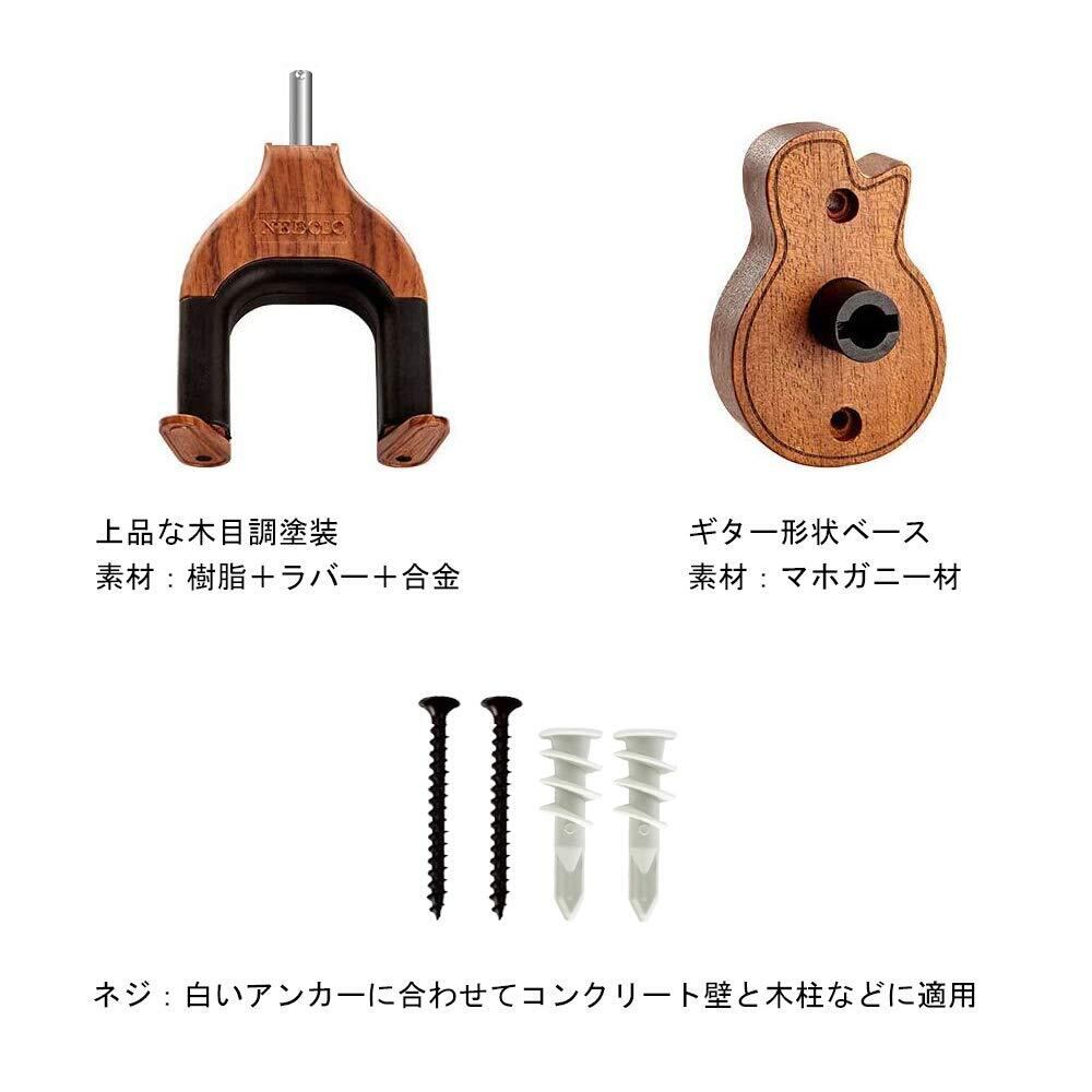 Neboic ギターハンガー 壁掛け 自動ロック ギター形状の硬材ベース ギターフック 荷重15KG ギタースタンド アコギ、エレキ、ベース用 取付スクリュー付き