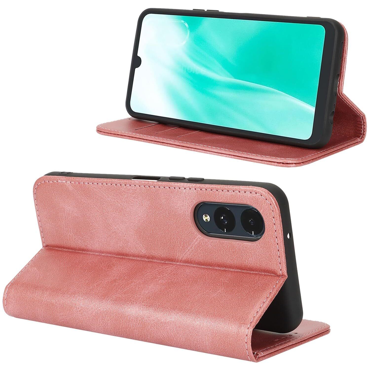 Arrows We2 ケース 手帳型 カードケース M07 SIMフリー F-52E docomo au FCG02 A402FC SoftBank 全対応 ArrowsWe2 アローズWE2 カバー アローズ WE2 F52E 手帳ケース スマホケース case 適用 iCoverCase 合成皮革 マグネット カード収納 携帯カバー カード入れ スタンド 落ち着いた色 レトロ ピンク | hananoki