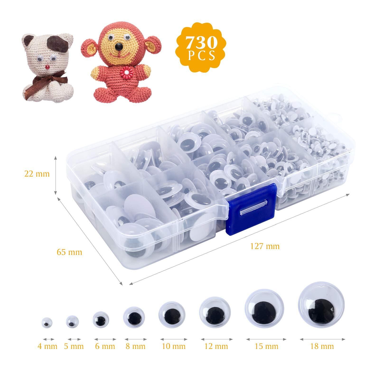 パッケージ内容: 動く目 730 個、8 サイズ、4mm x 300、5mm x 200、6mm x 100、8mm x 50、10mm x 26、12mm x 22、15mm x 20、18mm x 12。さまざまなサイズが、クラフト プロジェクトの作成でのニーズを満たします。