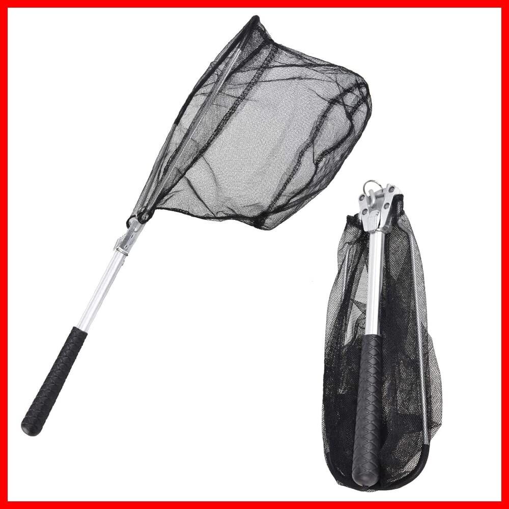 RuMenJiang タモ網 ステンレス製ハンドル 玉網 黒 ランディングネット 折り畳み式 携帯便利 軽量 魚取り 釣り具 釣り網 全長50cm 折り畳30cm