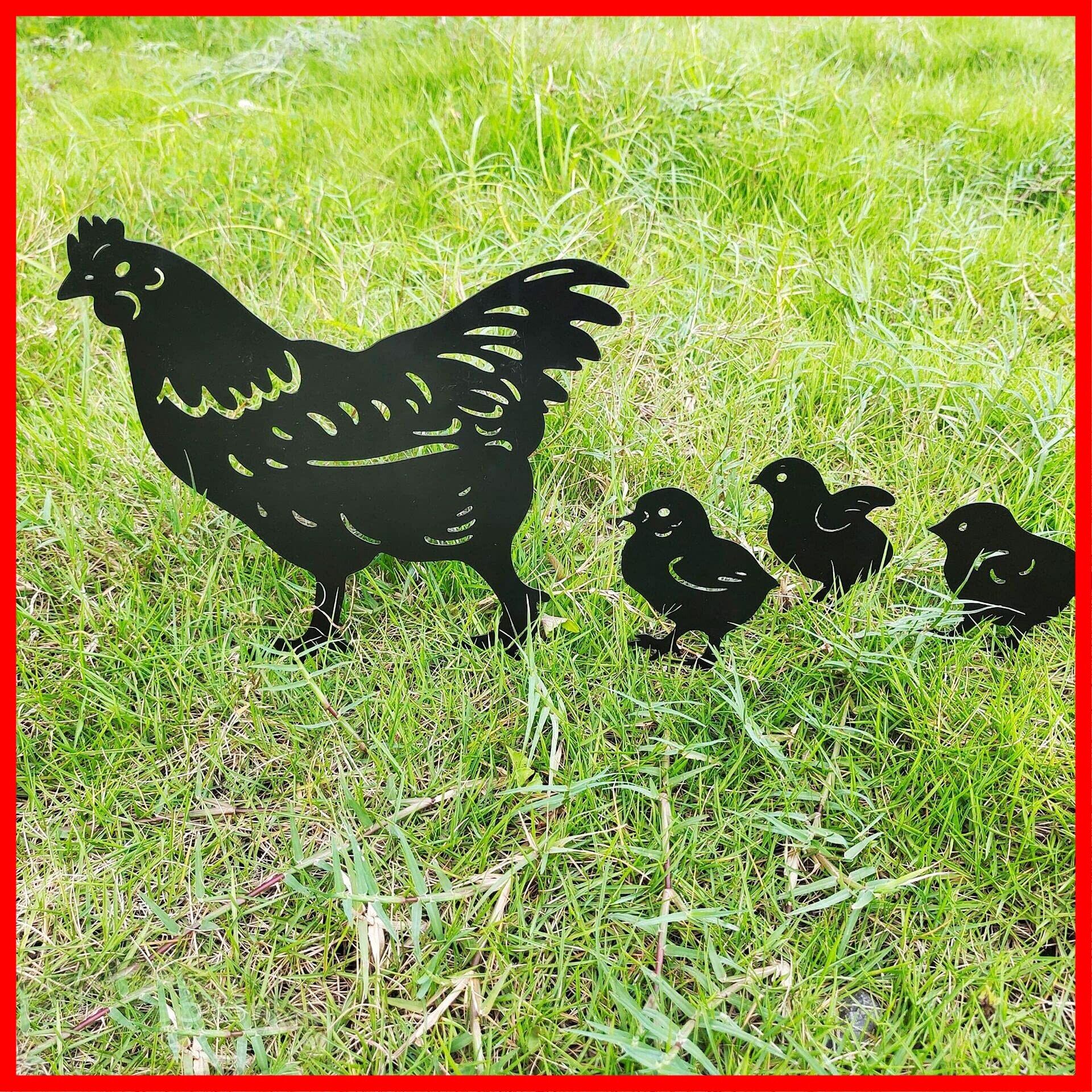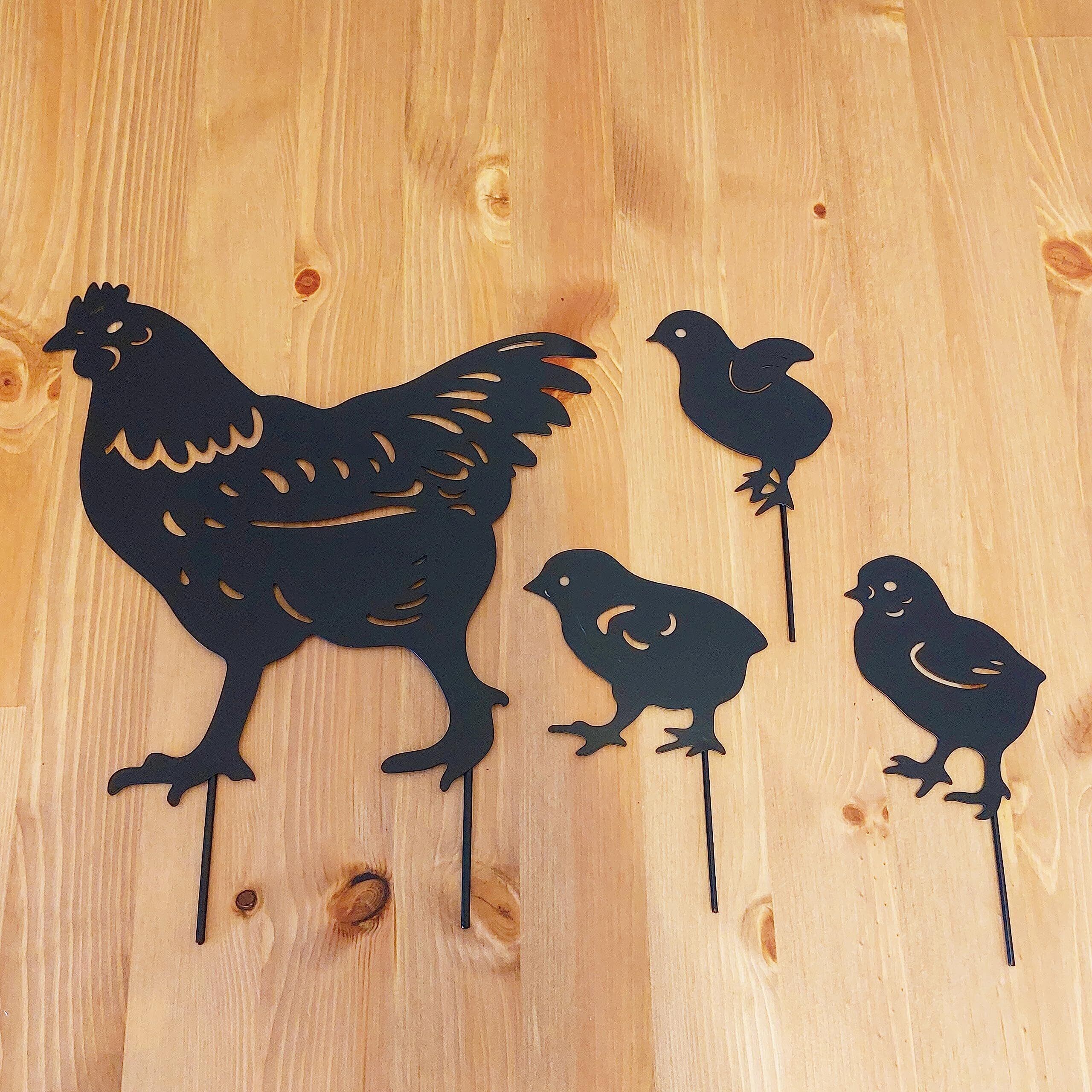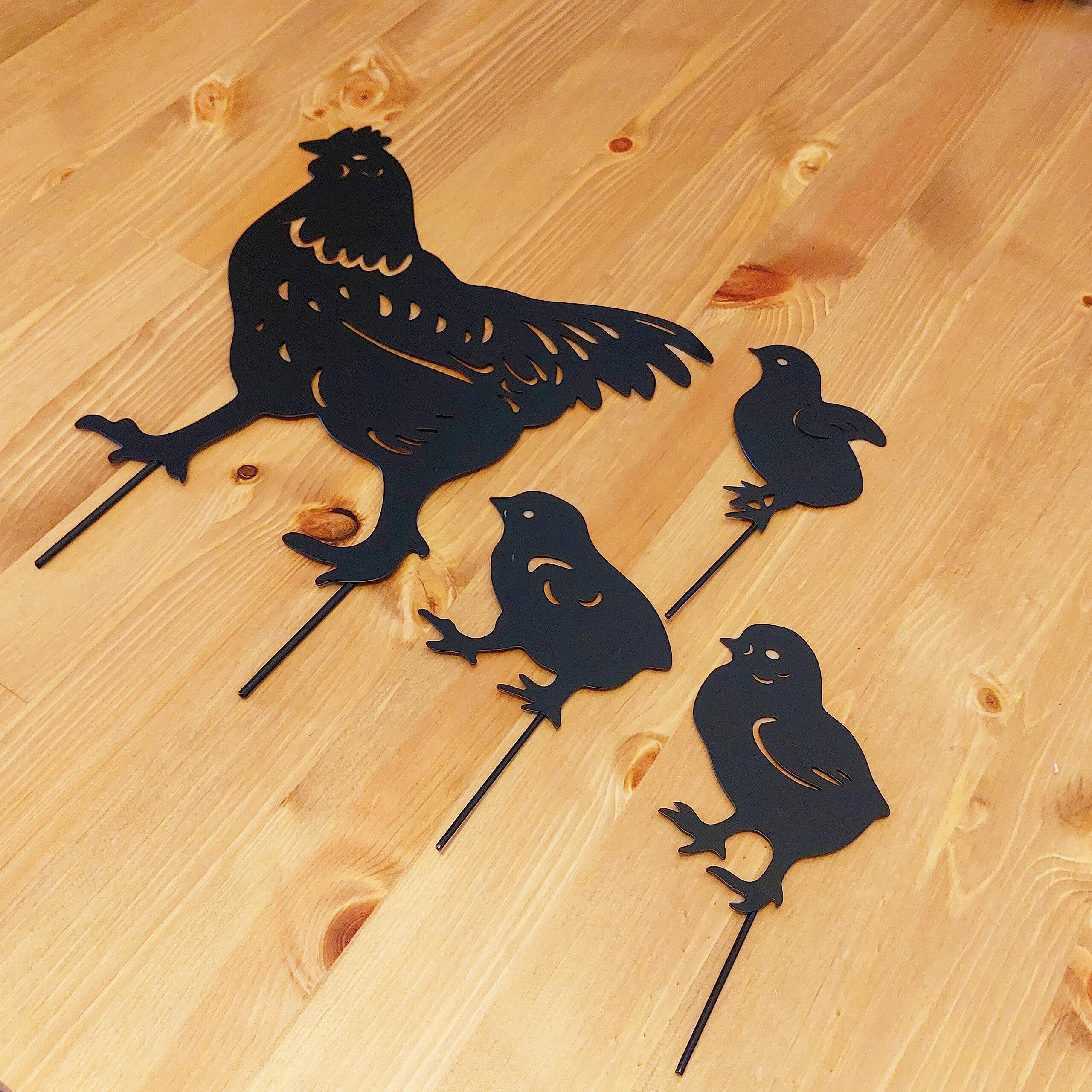 SNSで話題のアイテム◎ お庭に刺して飾っていただける4枚セットのニワトリ親子のガーデニング雑貨です。