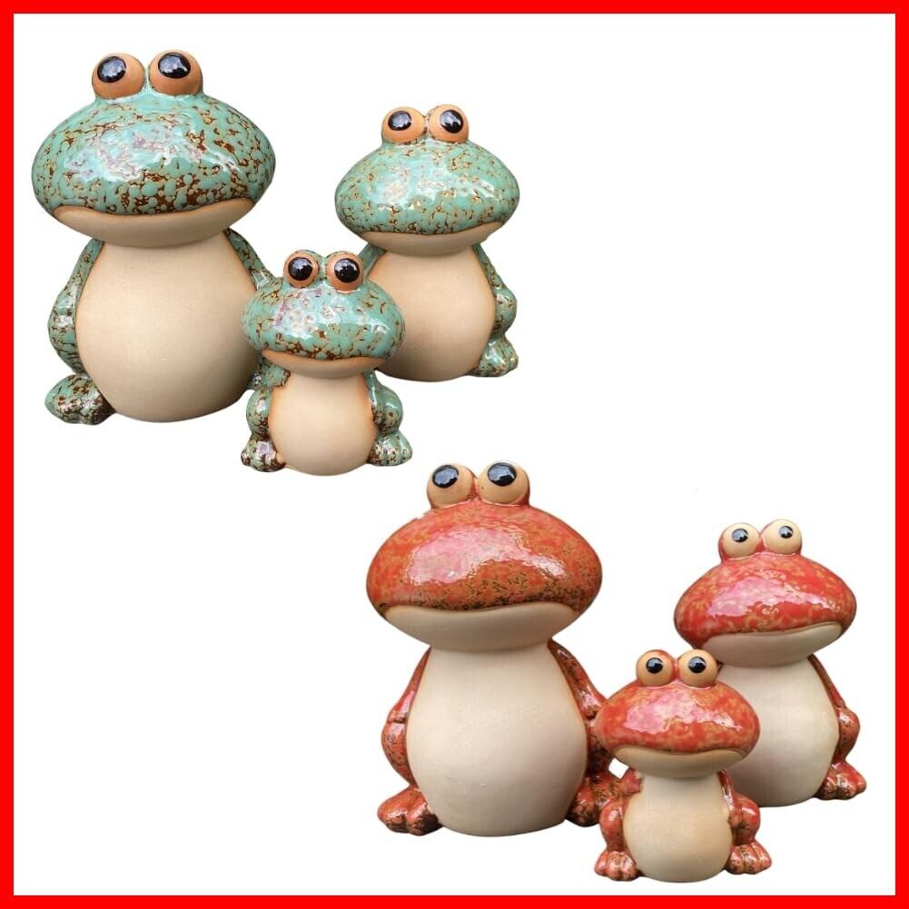 [S.T.S.G] カエル 置物 オブジェ インテリア オーナメント 装飾 陶器 オブジェ 雑貨 飾り プレゼント 縁起物 風水 玄関 オーナメント (カエルの家族(緑・赤セット)) | hananoki