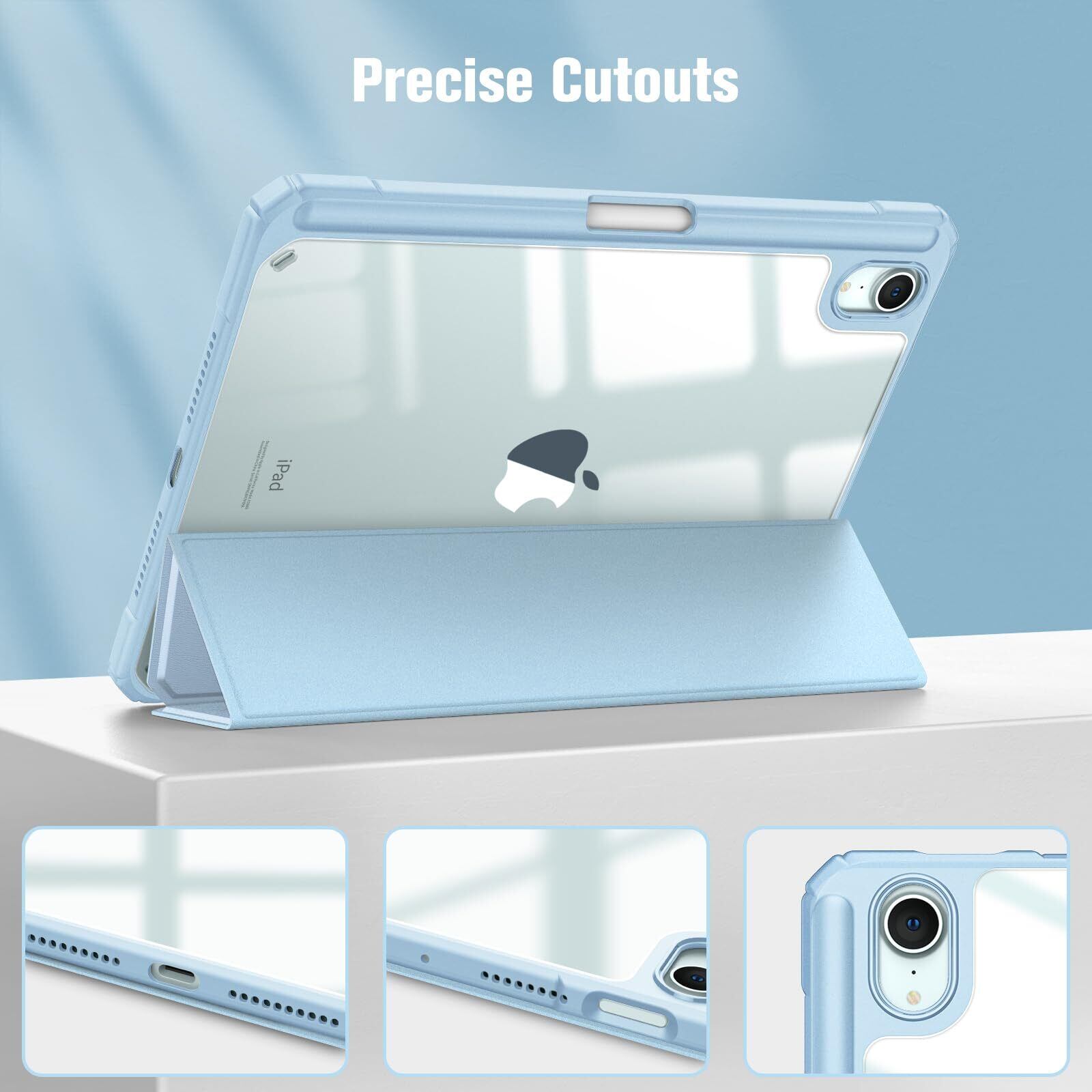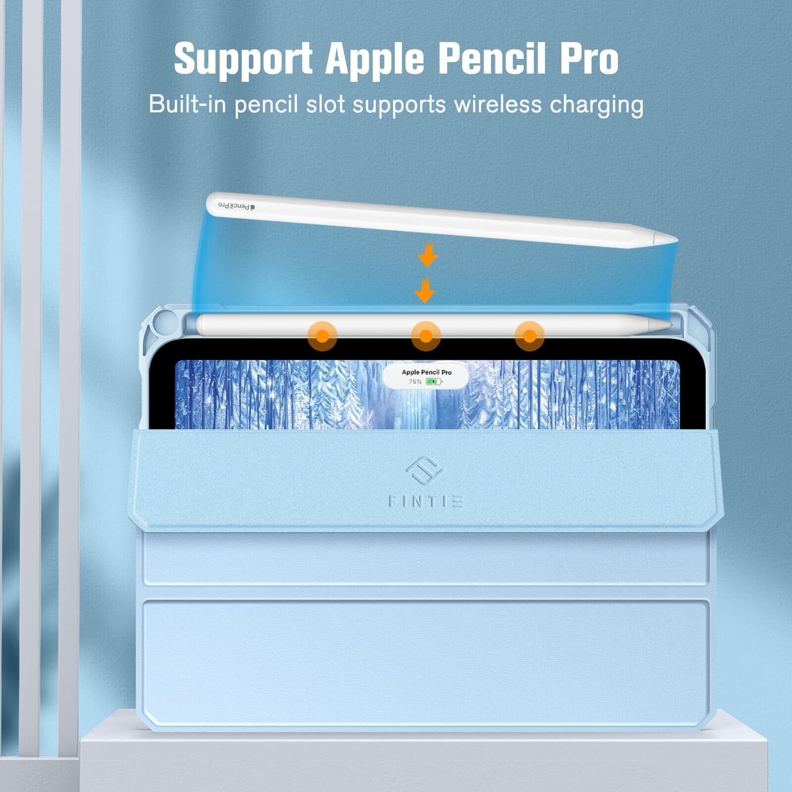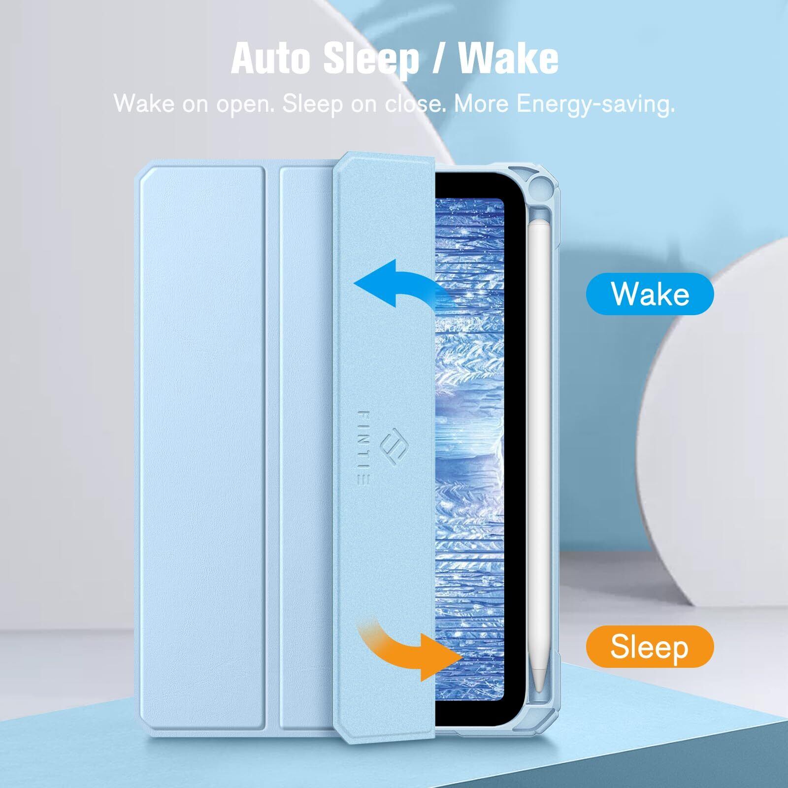 Fintie for iPad Mini 7 ケース (A17 Pro 2024) / iPad Mini 6 ケース 2021 8.3インチ 第7/6世代 透明バックカバー Pencil 収納可能 Pencil ワイヤレス充電対応 三つ折スタンド スリープ機能 軽量 薄型 傷つけ防止 PU合成レザー TPU (ブルー)