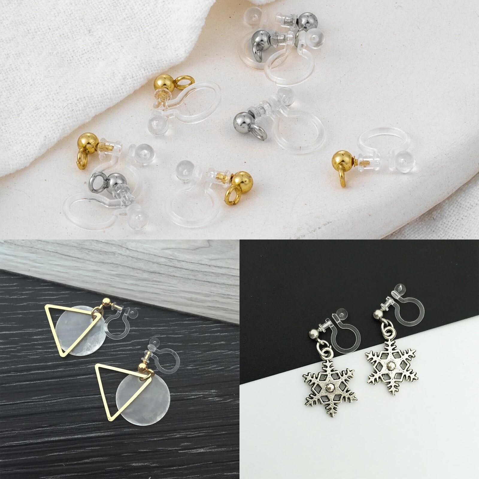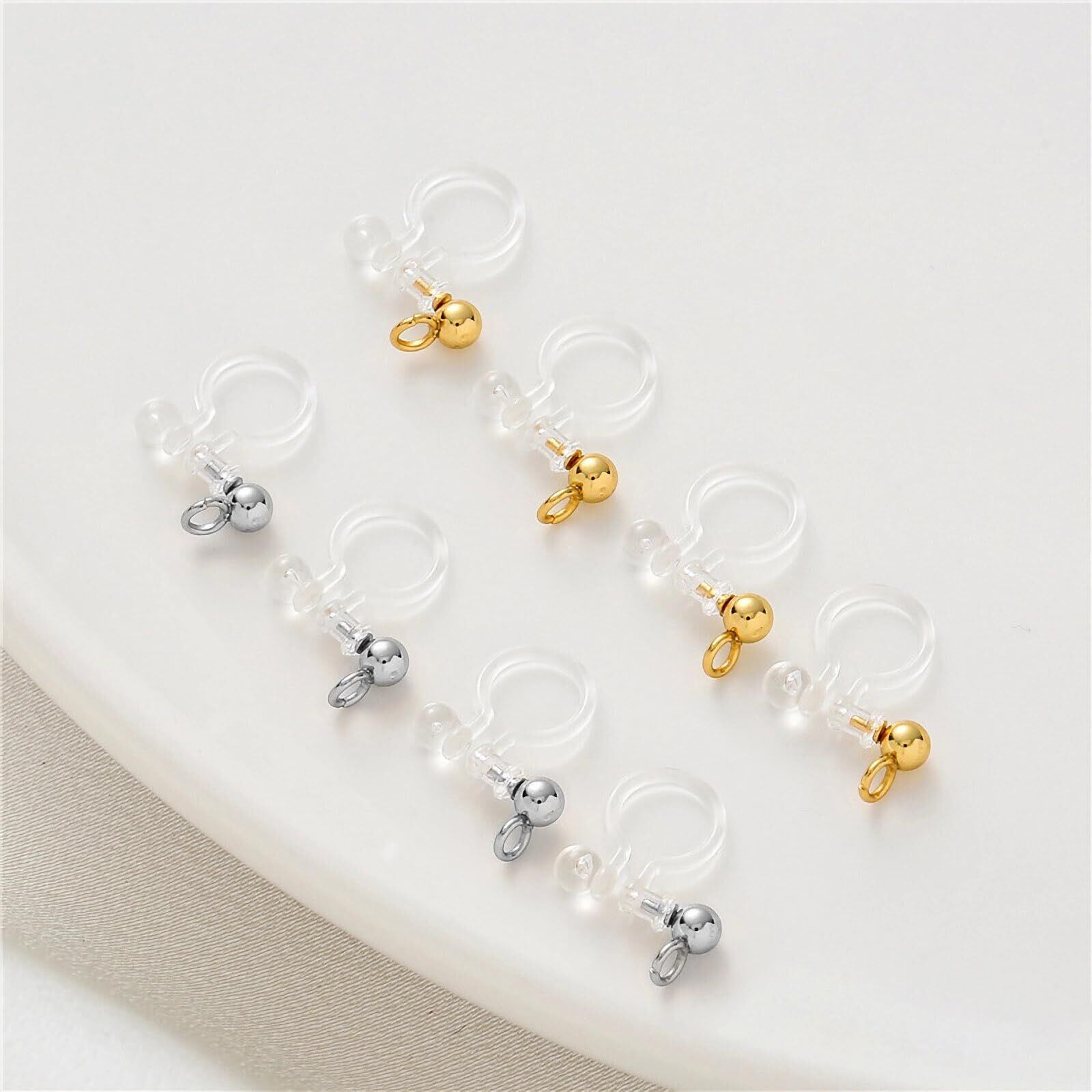 【BEAUTY PLAYER】ノンホールピアス 樹脂 20ペア40個 イヤリングコンバーター パーツ カン付き イヤリング セット ゴールド ステンレス DIY ハンドメイド (カン) | hananoki