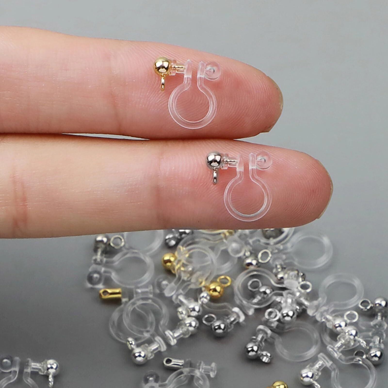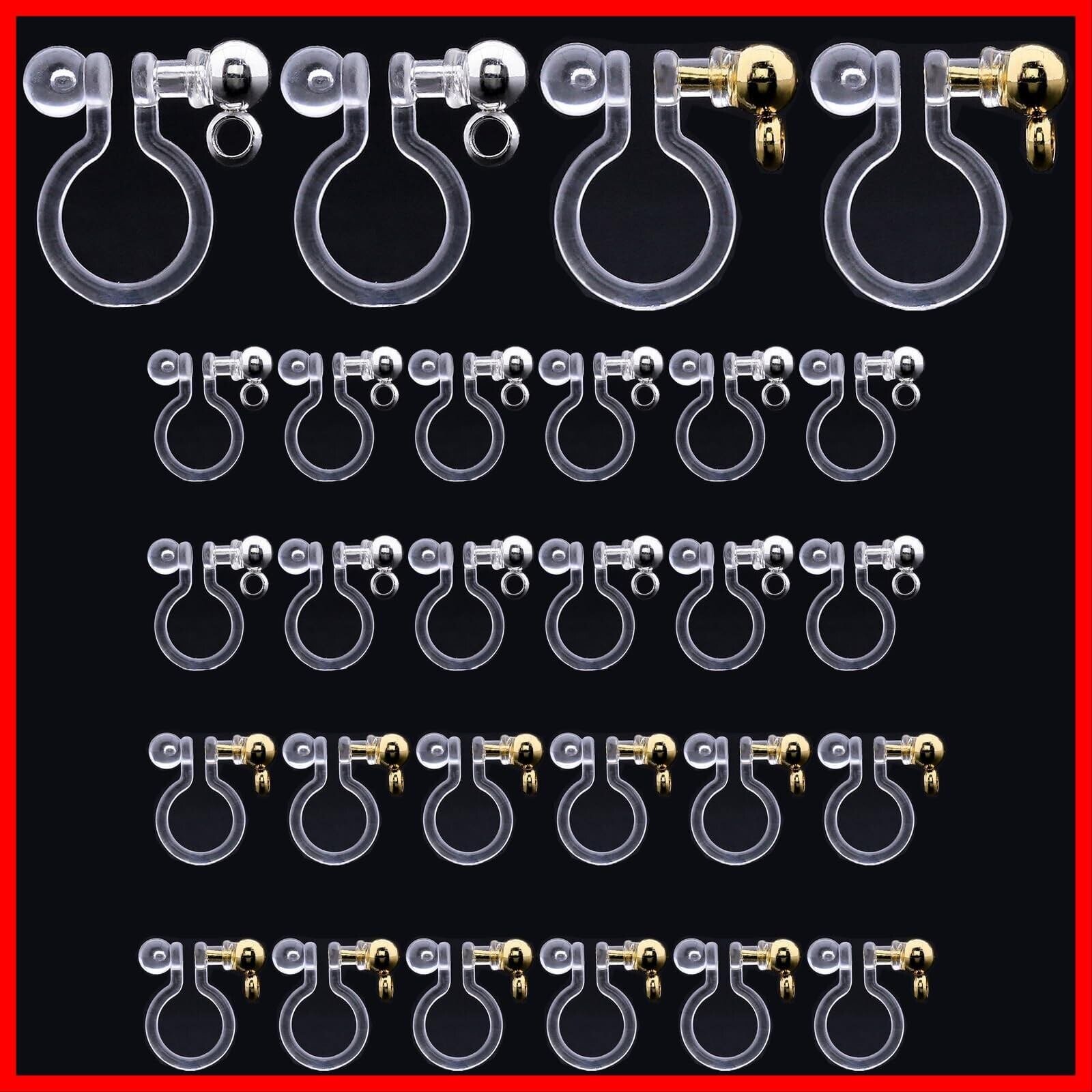 【BEAUTY PLAYER】ノンホールピアス 樹脂 20ペア40個 イヤリングコンバーター パーツ カン付き イヤリング セット ゴールド ステンレス DIY ハンドメイド (カン)