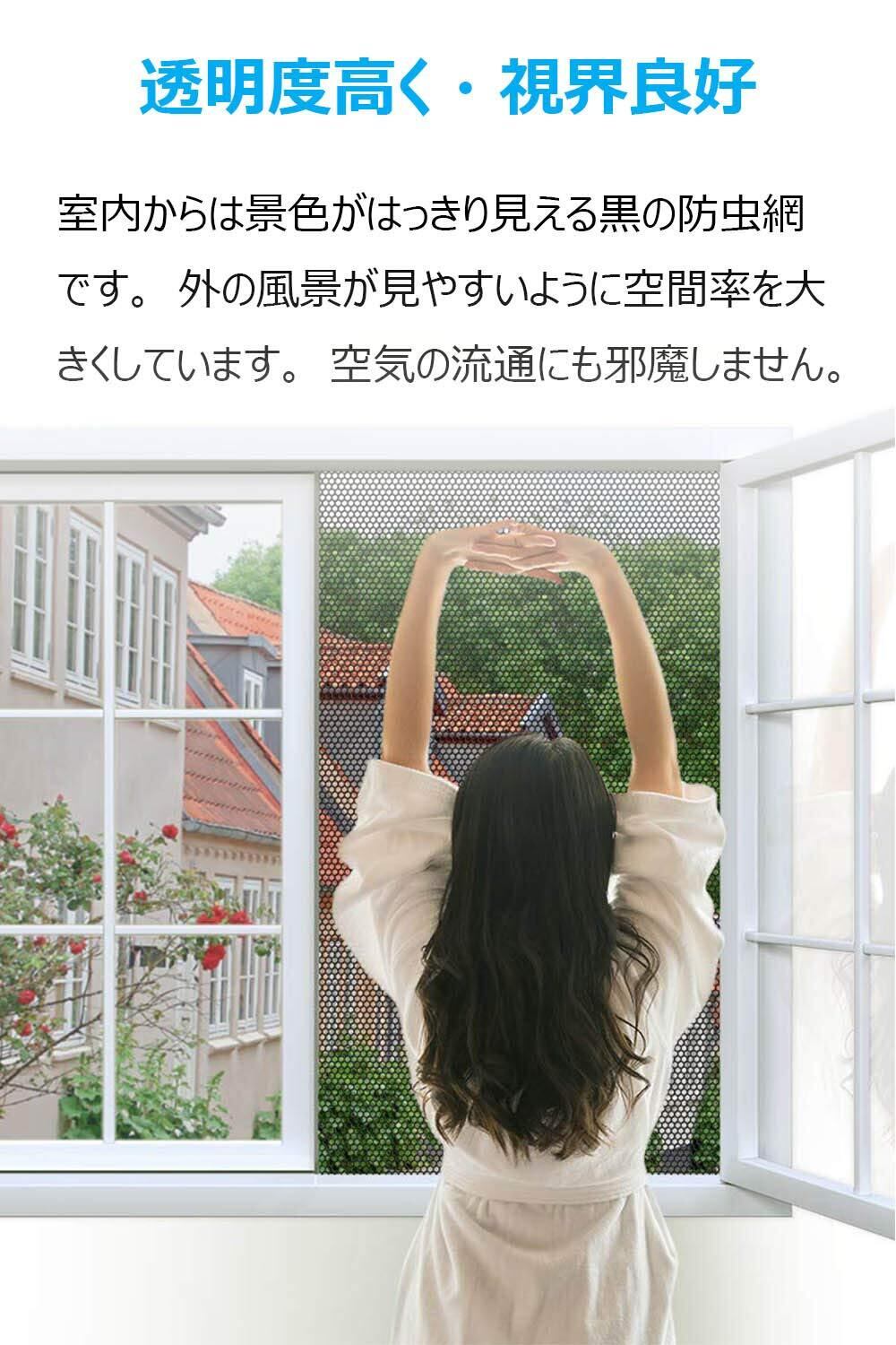 虫よけバッチリ:緻密な網目で、窓を開けたままでも、虫の入りをきちんと防止します。大きい粒の埃、アレルギー物質の侵入も低減します。害虫を気にせず、お手軽に空気の入れ替えができます。
