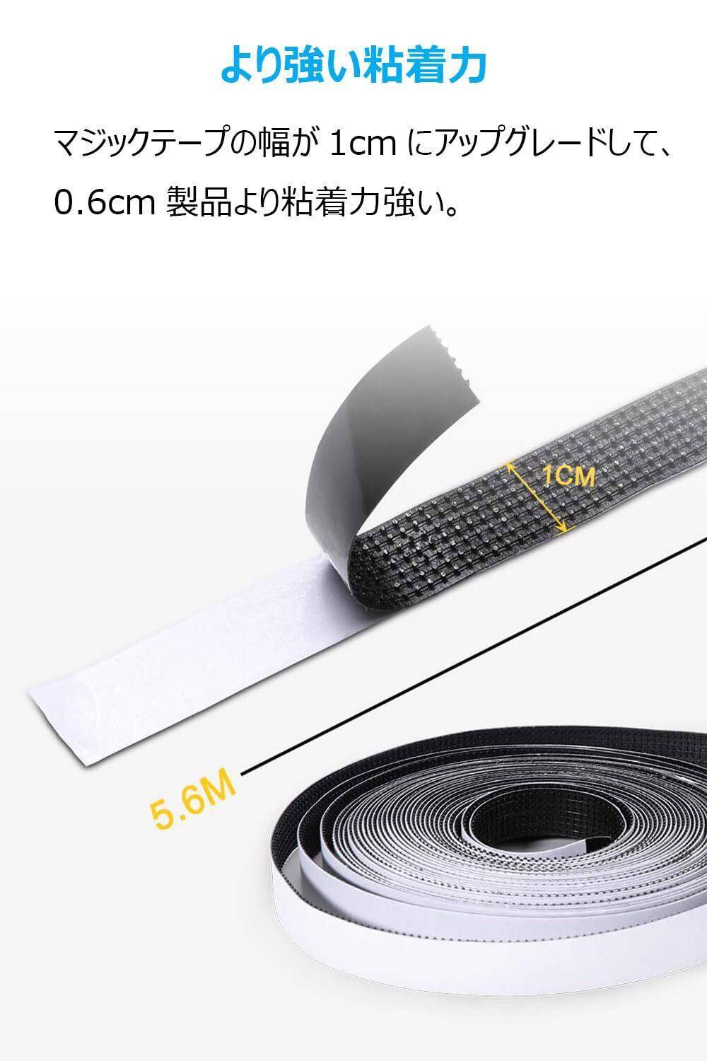 より強い粘着力:マジックテープの幅は1cmまで広くしています。テープが広いほど、より落ちにくいです。装着コツ:貼る面に水や油、埃などが残っていないことをご確認ください。