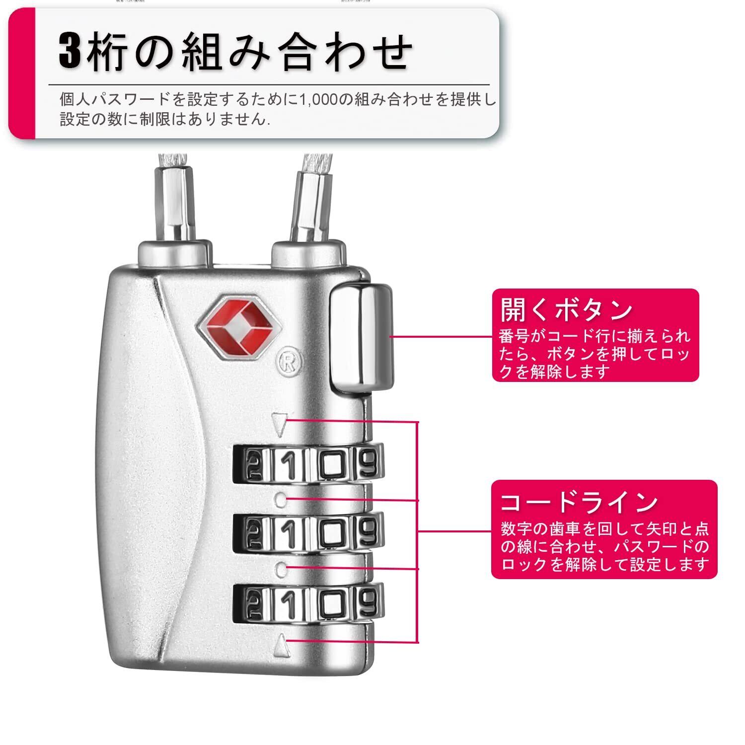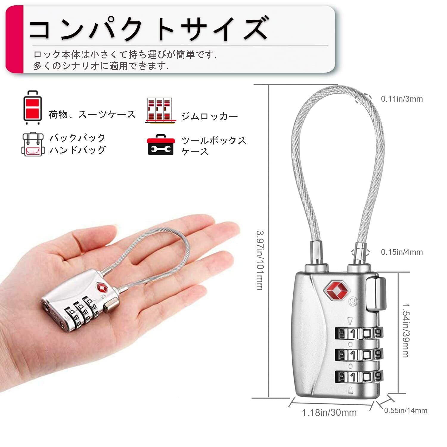 ZHEGE TSAロック 南京錠 旅行 ダイヤル式 ワイヤーロック 暗証番号 荷物、スーツケース、バックパック用