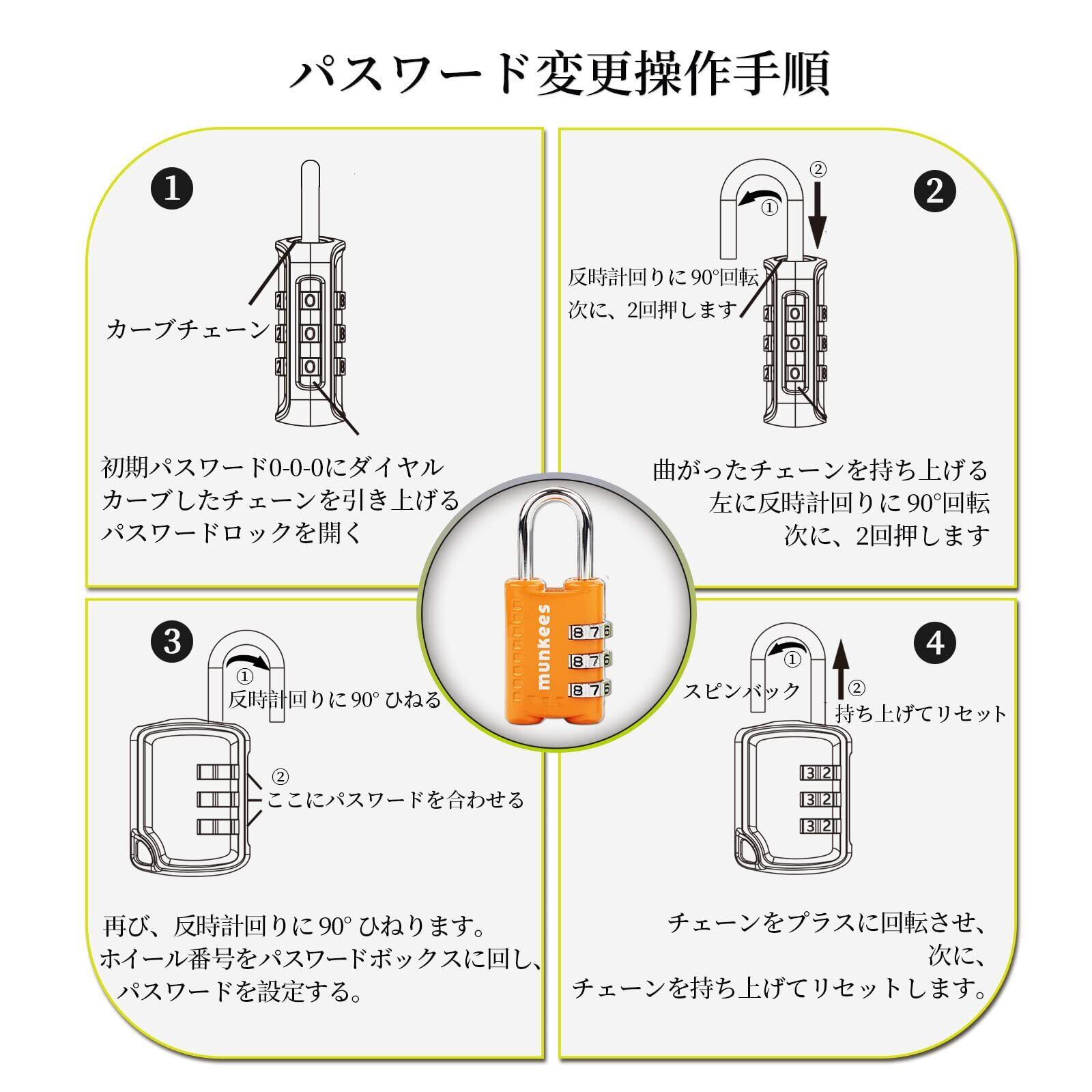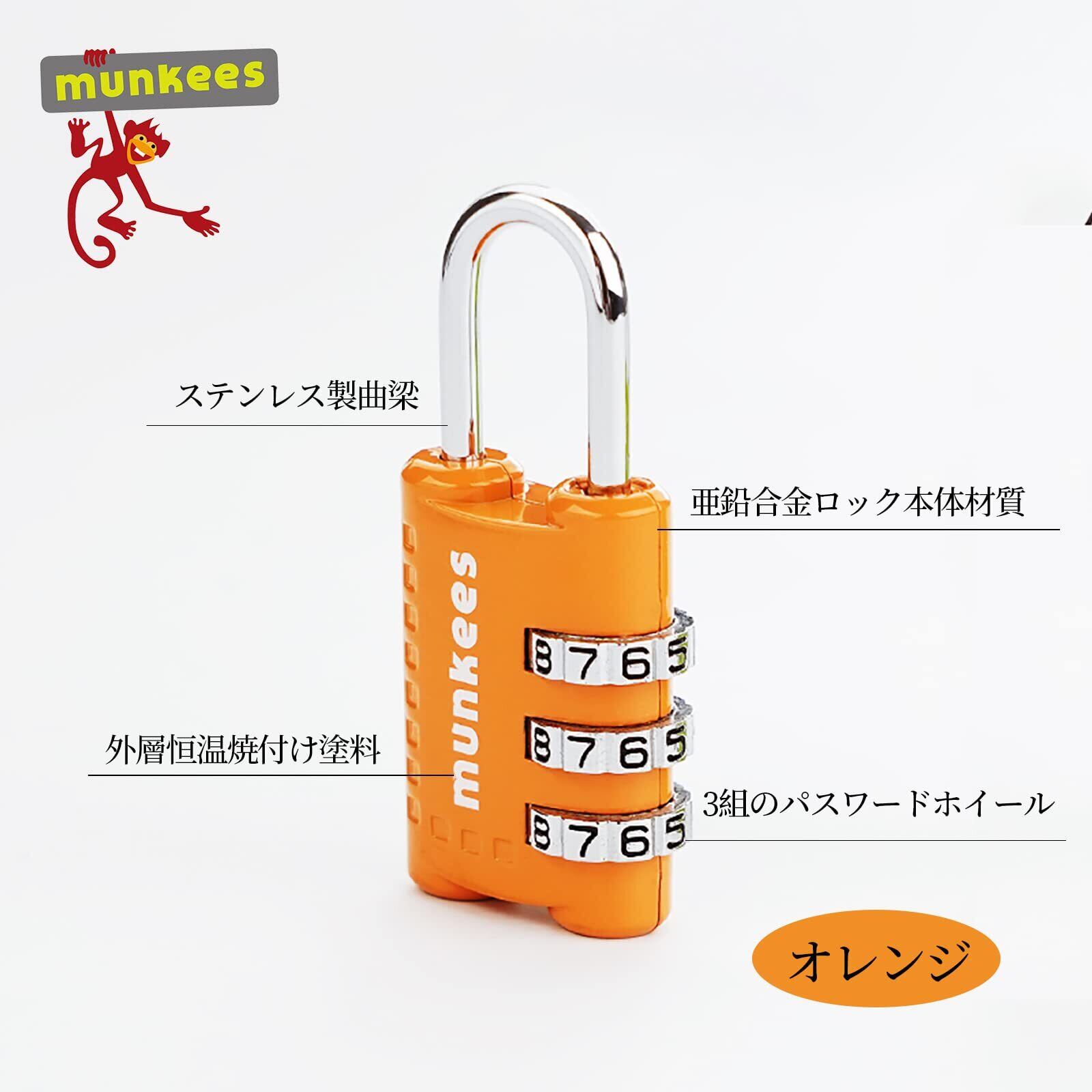 munkees ミニ パスワードロック 南京錠 旅行 ダイヤル式 ロック 暗証番号 荷物、スーツケース、バックパック用 (オレンジ)