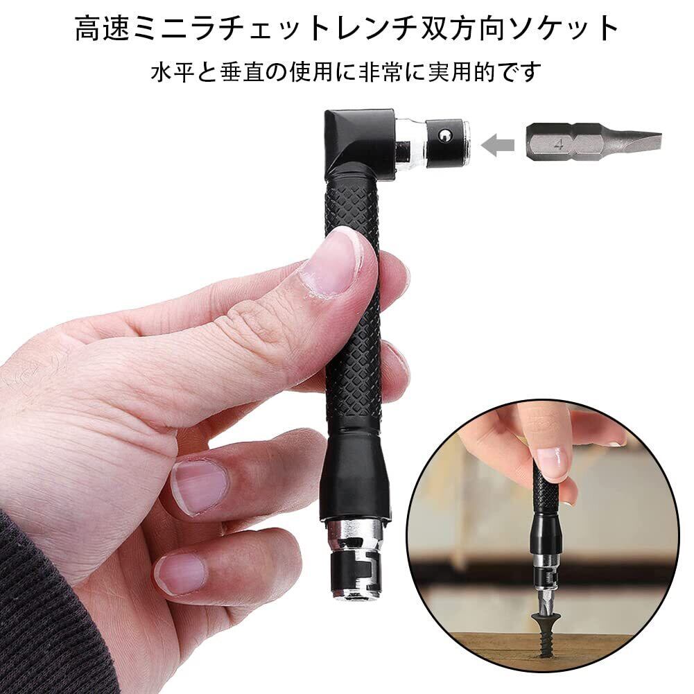 Kigauru L 字型 1/4 レンチ L字型エクステンションハンドルセット スチール製 六角穴 6.35mm ドライバー ソケット レンチ 高硬度 高靭性 L字型エクステンション DIY 修復ツール + 10個 ドライバービットセット