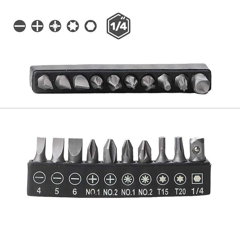 アプリケーション:レンチは6.35mm(1/4 インチ)の六角ドライバービットに適合し、ドライバーセットには、10種類のドライバービットが装備されています、さまざまな種類のネジを駆動するために使用できます。アンチスリップとL字型ハンドルグリップは、水平と垂直の使用に非常に実用的です。