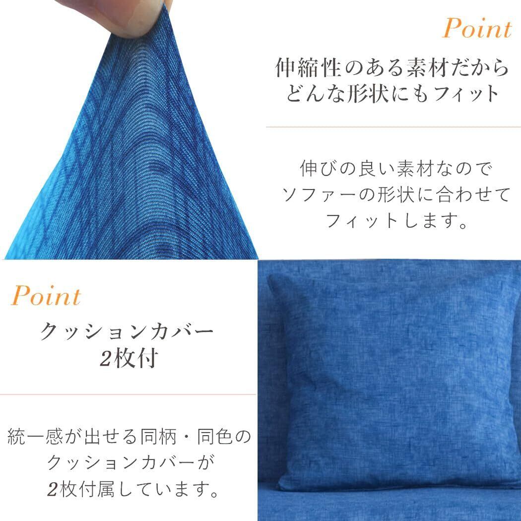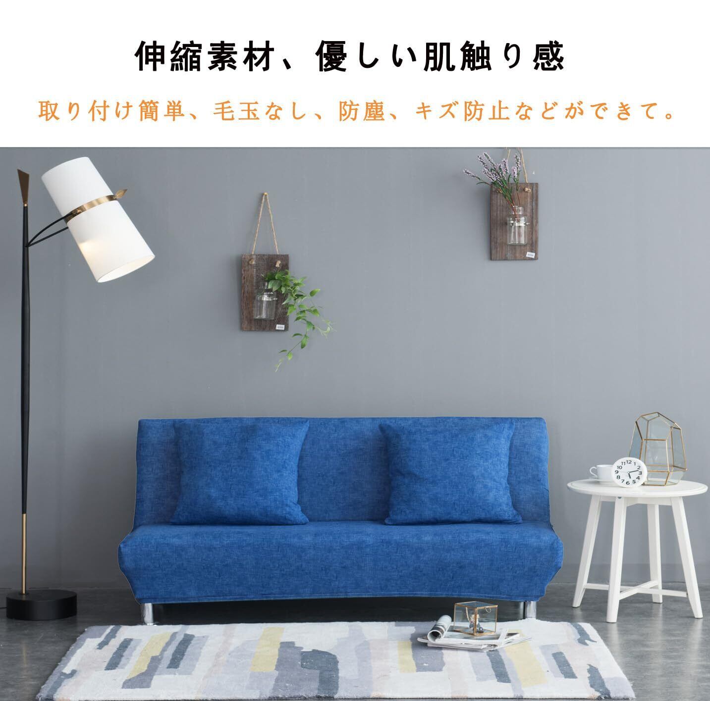 TMVOK ソファーカバー 2人掛け 伸縮素材 ソファベッドカバー 肘なし 柔らかい 犬 猫 傷 防止 クッションカバー2枚付 収納便利 四季通用 幅120-155cm (ブルー) | hananoki