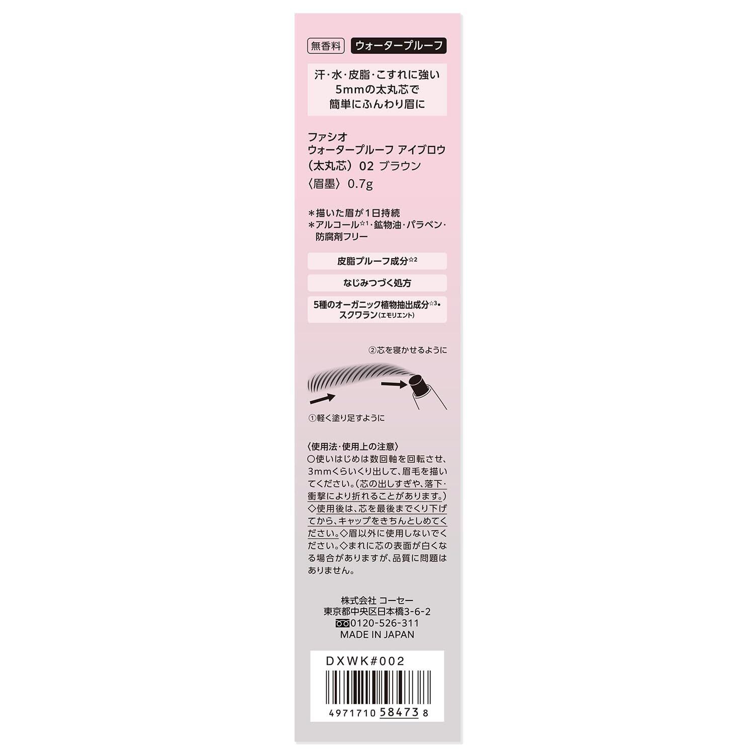 FASIO(ファシオ) ウォータープルーフ アイブロウ (太丸芯) 02 ブラウン 0.7g アイブロウペンシル 落ちない