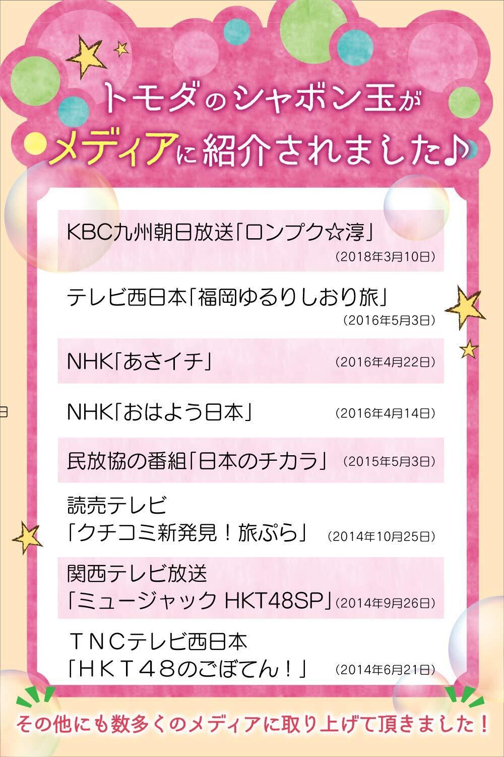 新型高性能シャボン液で従来比2.5倍パワー! 子供たちが喜ぶ大きな30CM程のシャボン玉も作って頂けます