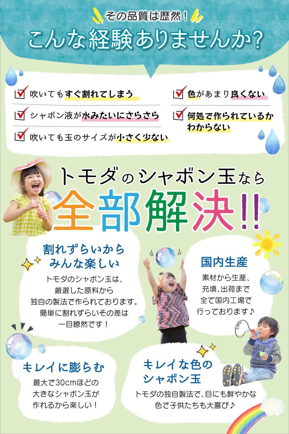 トモダ 新型シャボン玉液 高性能2.5倍パワー 大容量1800ml 日本製 しゃぼん玉 えき 補充液 安全基準ST準拠液 (2本)